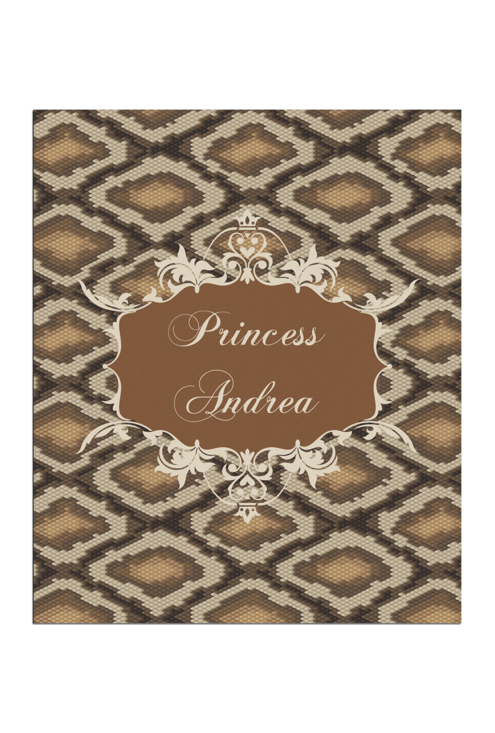 Snake skin print is currently trending and so we created this incredibly beautiful design with a snake skin background in classic browns and beige. The gorgeous label is one of the labels in our floral frames collection. It looks like a crown and thus we chose the personalization to include "princess".