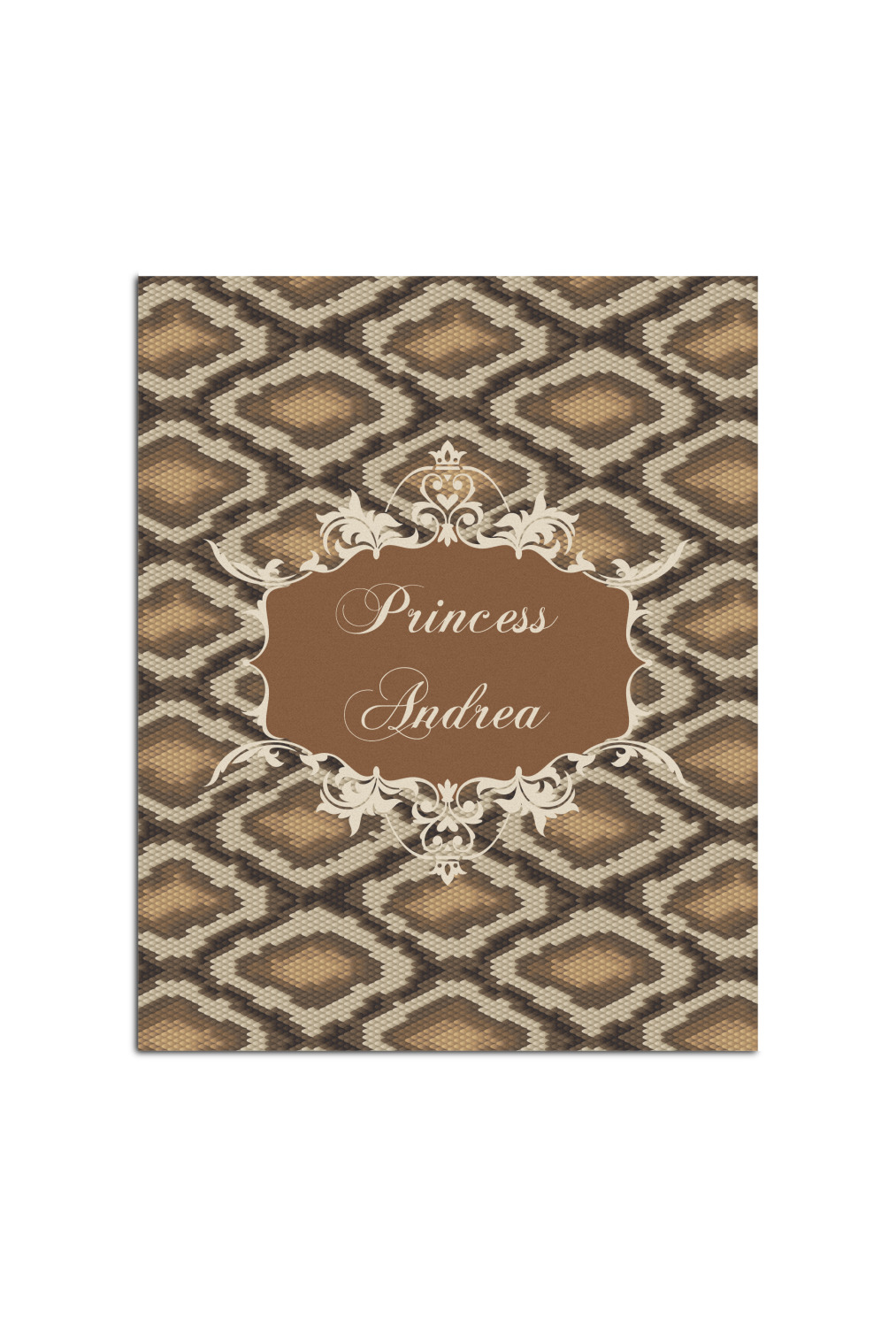 Snake skin print is currently trending and so we created this incredibly beautiful design with a snake skin background in classic browns and beige. The gorgeous label is one of the labels in our floral frames collection. It looks like a crown and thus we chose the personalization to include "princess".