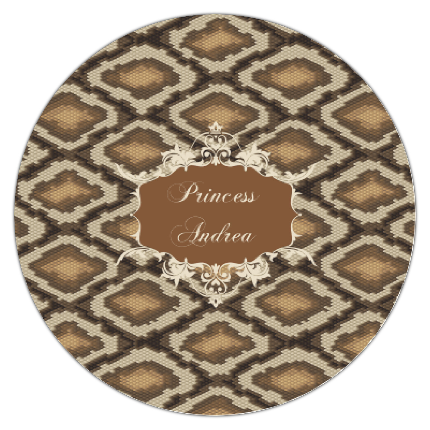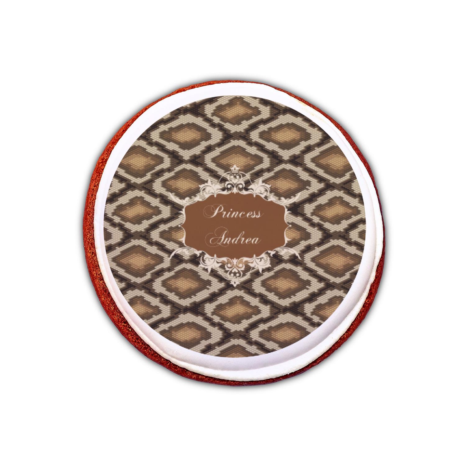Snake skin print is currently trending and so we created this incredibly beautiful design with a snake skin background in classic browns and beige. The gorgeous label is one of the labels in our floral frames collection. It looks like a crown and thus we chose the personalization to include "princess".