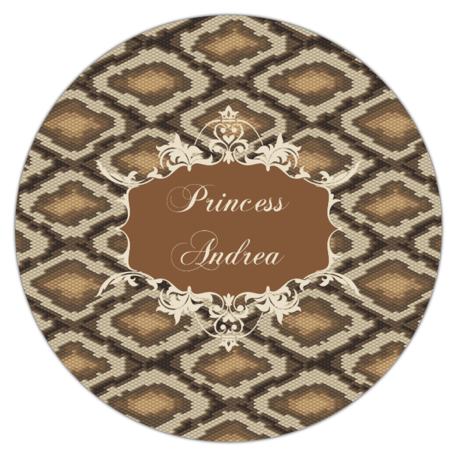 Snake skin print is currently trending and so we created this incredibly beautiful design with a snake skin background in classic browns and beige. The gorgeous label is one of the labels in our floral frames collection. It looks like a crown and thus we chose the personalization to include "princess".