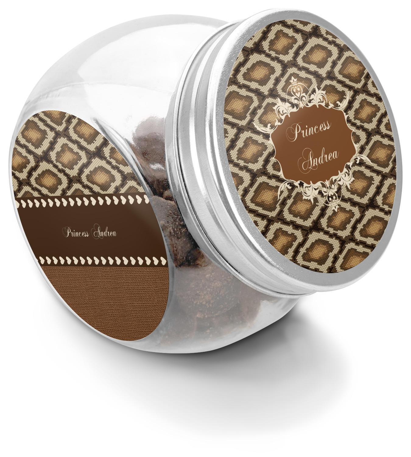 Snake skin print is currently trending and so we created this incredibly beautiful design with a snake skin background in classic browns and beige. The gorgeous label is one of the labels in our floral frames collection. It looks like a crown and thus we chose the personalization to include "princess".