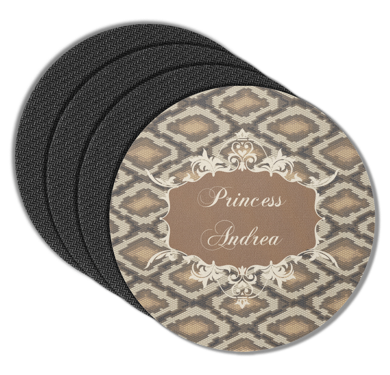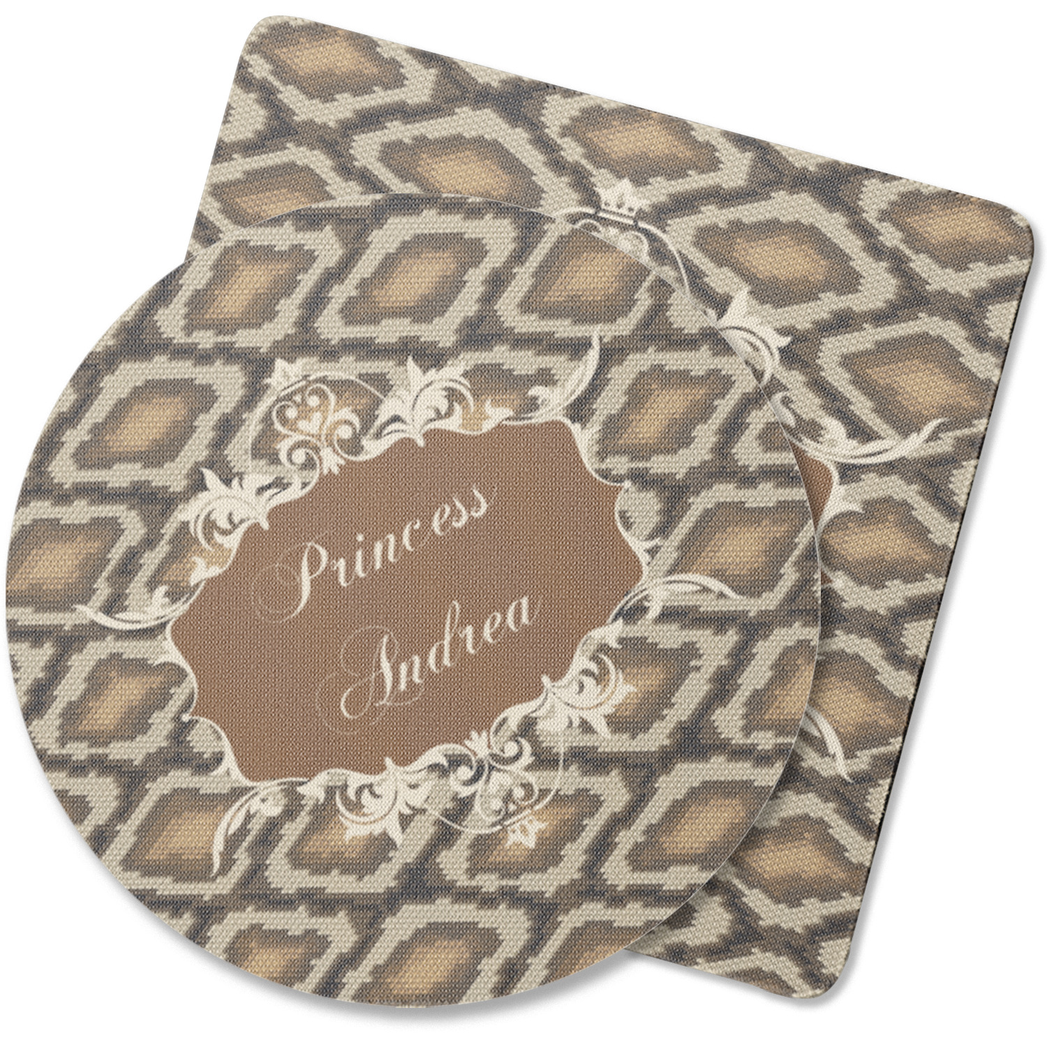 Snake skin print is currently trending and so we created this incredibly beautiful design with a snake skin background in classic browns and beige. The gorgeous label is one of the labels in our floral frames collection. It looks like a crown and thus we chose the personalization to include "princess".