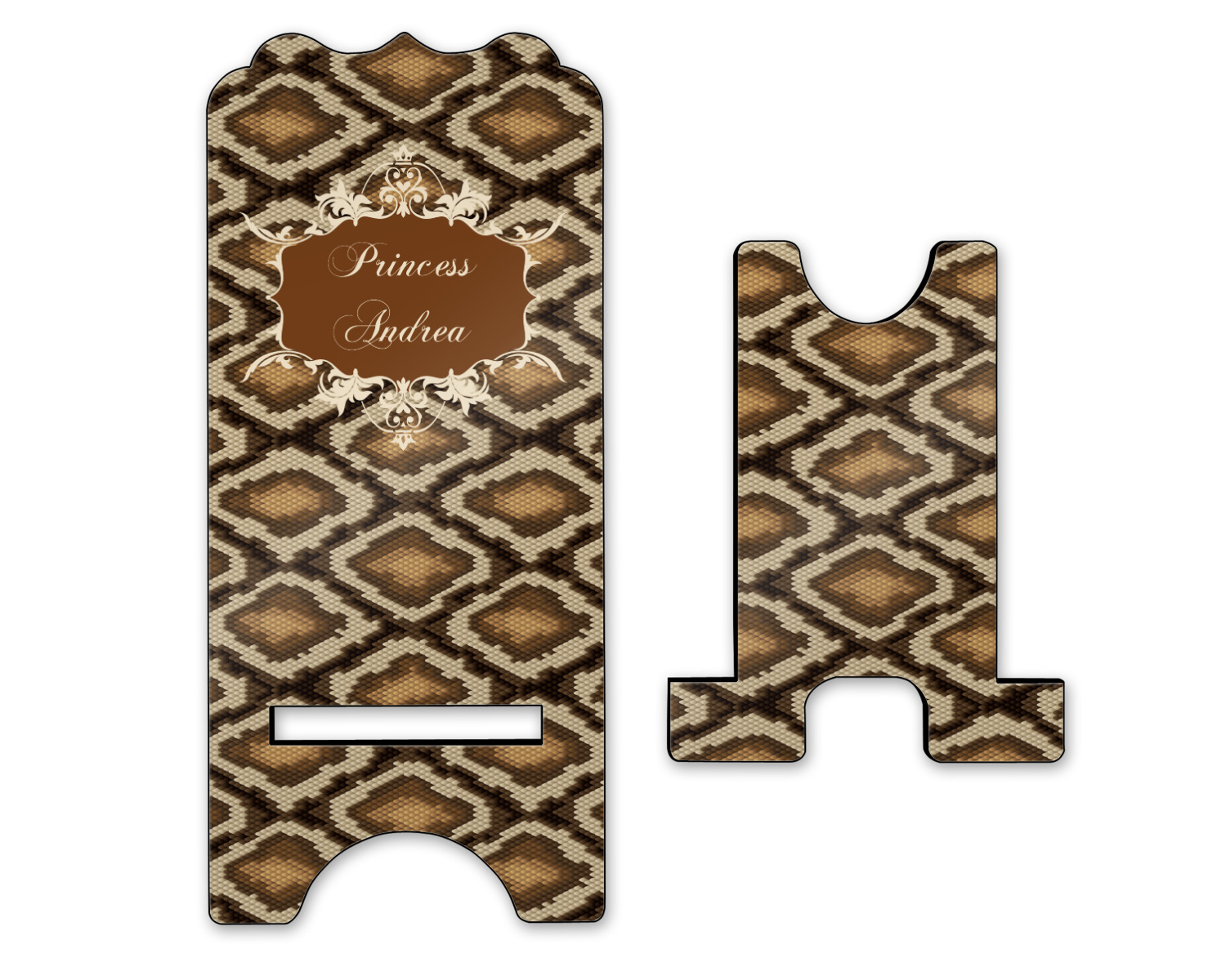 Snake skin print is currently trending and so we created this incredibly beautiful design with a snake skin background in classic browns and beige. The gorgeous label is one of the labels in our floral frames collection. It looks like a crown and thus we chose the personalization to include "princess".