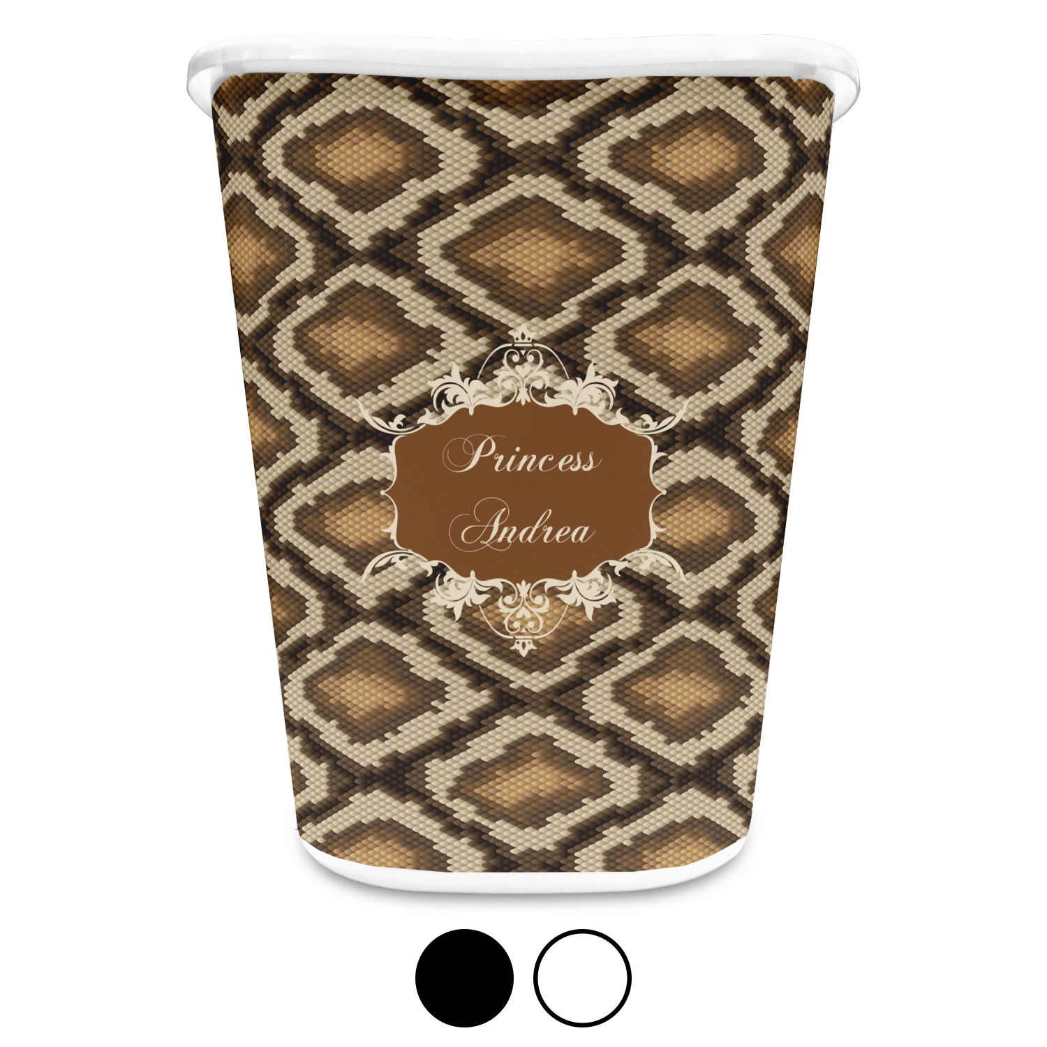 Snake skin print is currently trending and so we created this incredibly beautiful design with a snake skin background in classic browns and beige. The gorgeous label is one of the labels in our floral frames collection. It looks like a crown and thus we chose the personalization to include "princess".