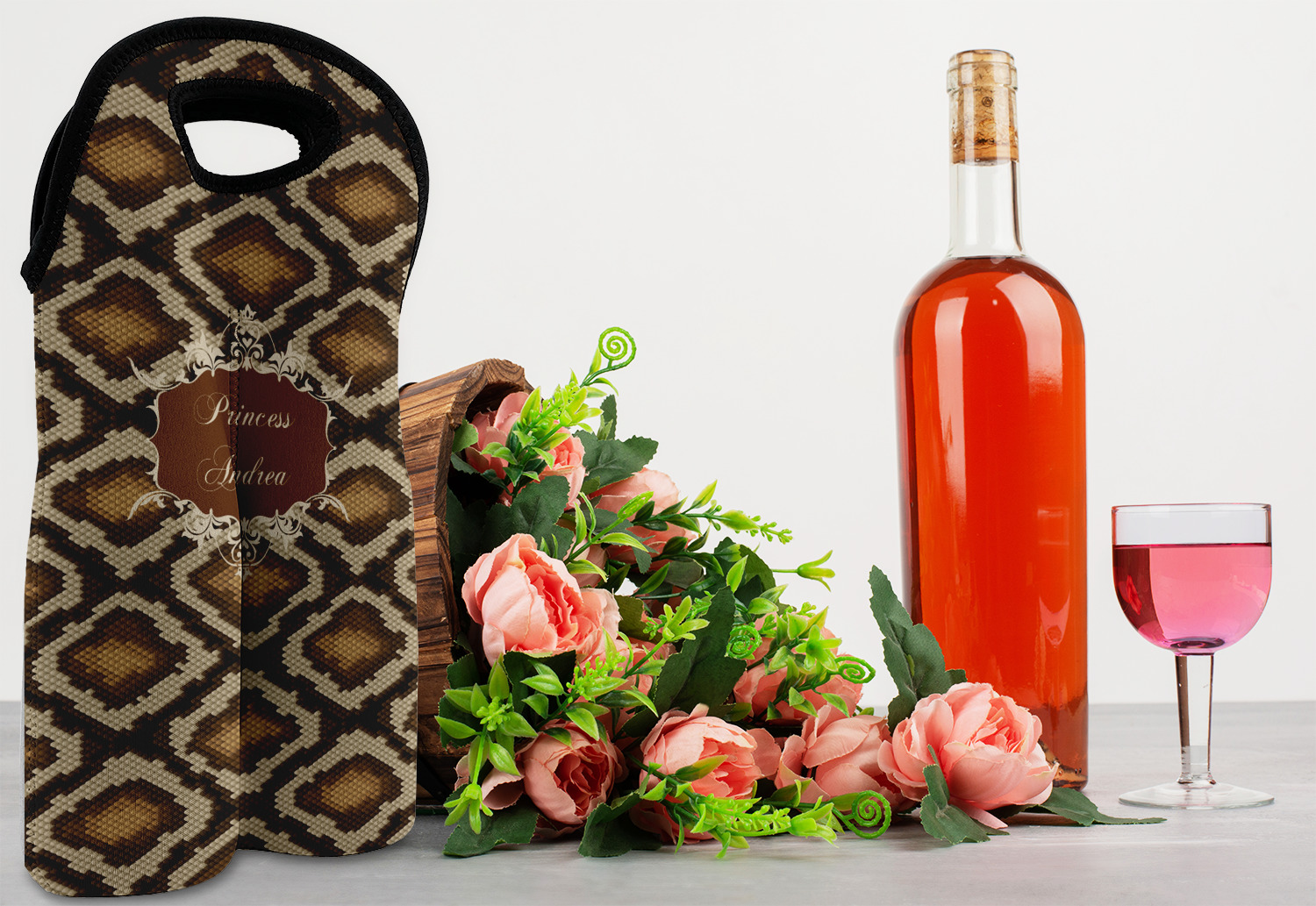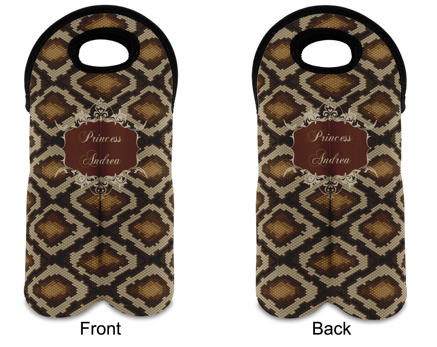 Snake skin print is currently trending and so we created this incredibly beautiful design with a snake skin background in classic browns and beige. The gorgeous label is one of the labels in our floral frames collection. It looks like a crown and thus we chose the personalization to include "princess".