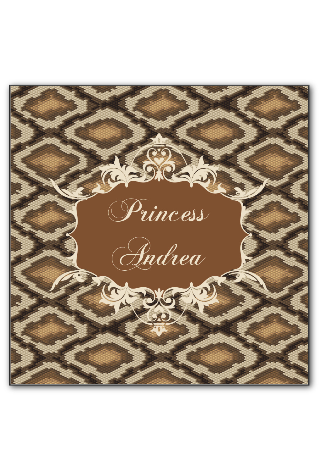 Snake skin print is currently trending and so we created this incredibly beautiful design with a snake skin background in classic browns and beige. The gorgeous label is one of the labels in our floral frames collection. It looks like a crown and thus we chose the personalization to include "princess".