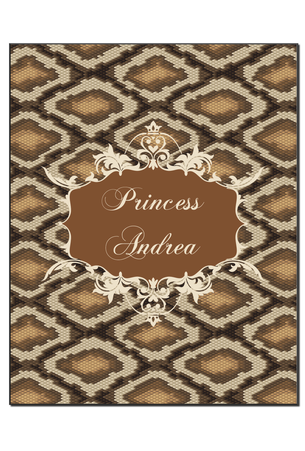 Snake skin print is currently trending and so we created this incredibly beautiful design with a snake skin background in classic browns and beige. The gorgeous label is one of the labels in our floral frames collection. It looks like a crown and thus we chose the personalization to include "princess".