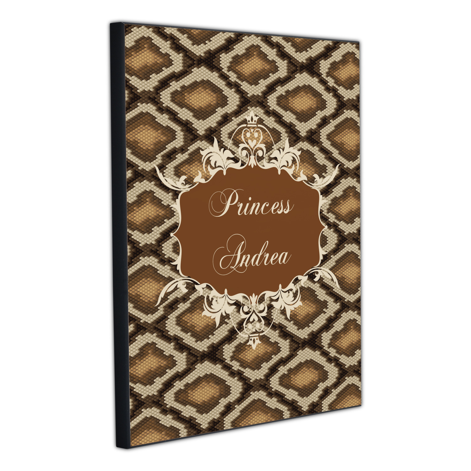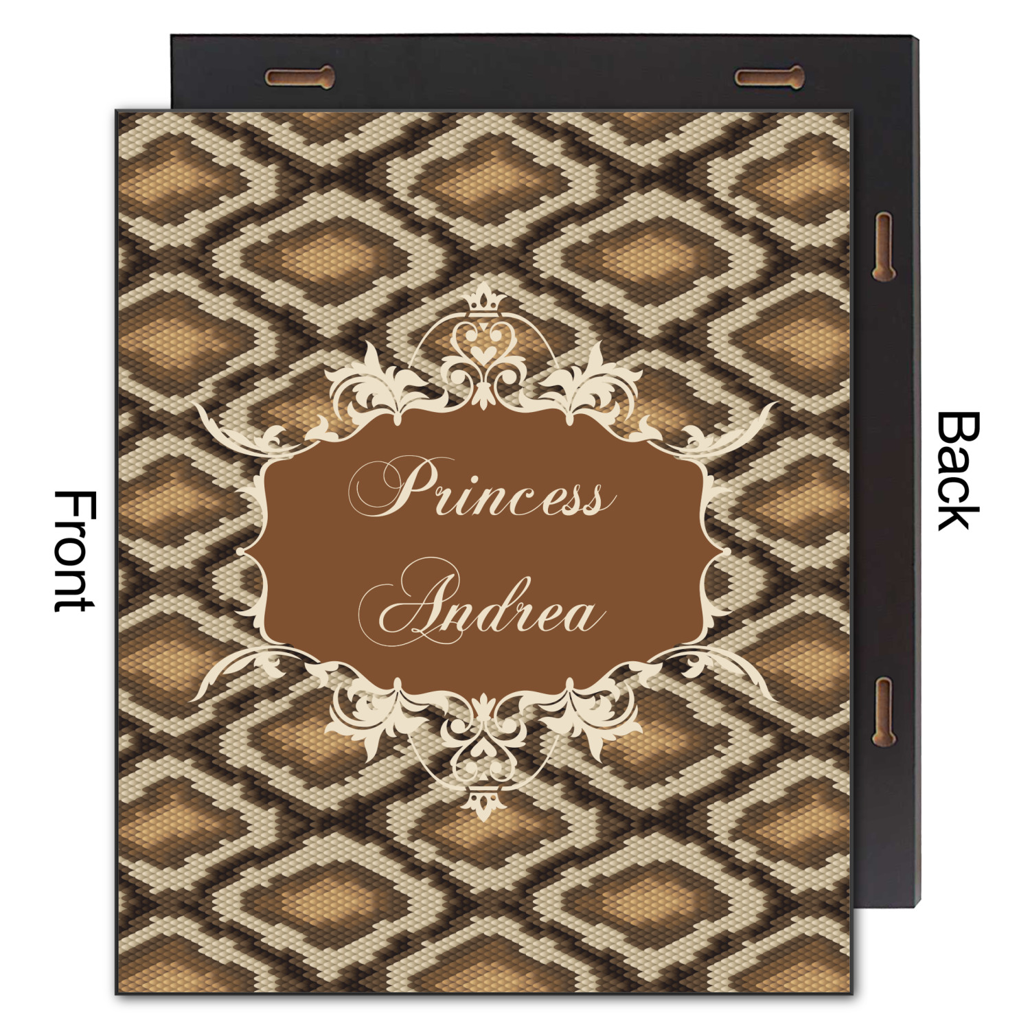 Snake skin print is currently trending and so we created this incredibly beautiful design with a snake skin background in classic browns and beige. The gorgeous label is one of the labels in our floral frames collection. It looks like a crown and thus we chose the personalization to include "princess".