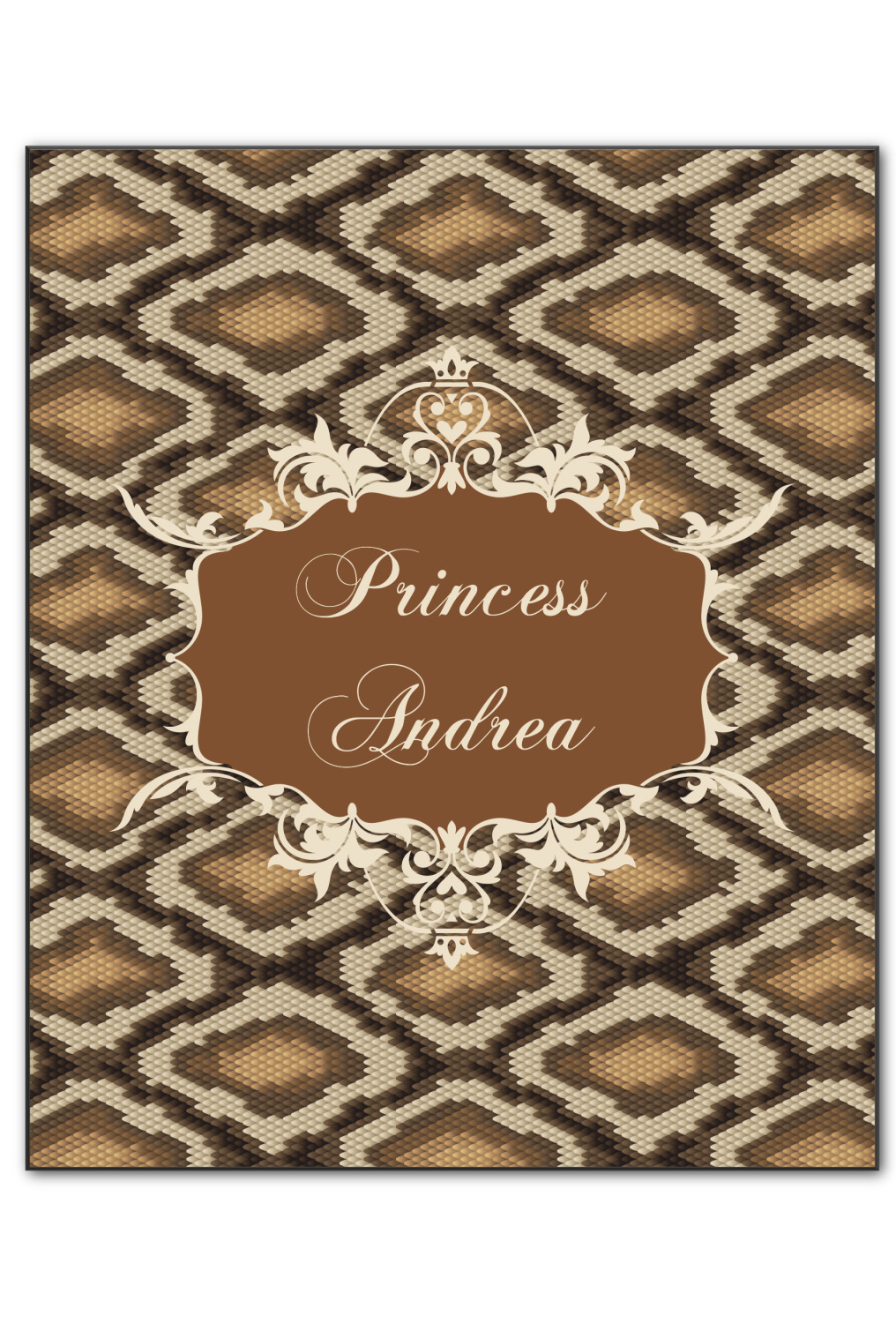 Snake skin print is currently trending and so we created this incredibly beautiful design with a snake skin background in classic browns and beige. The gorgeous label is one of the labels in our floral frames collection. It looks like a crown and thus we chose the personalization to include "princess".