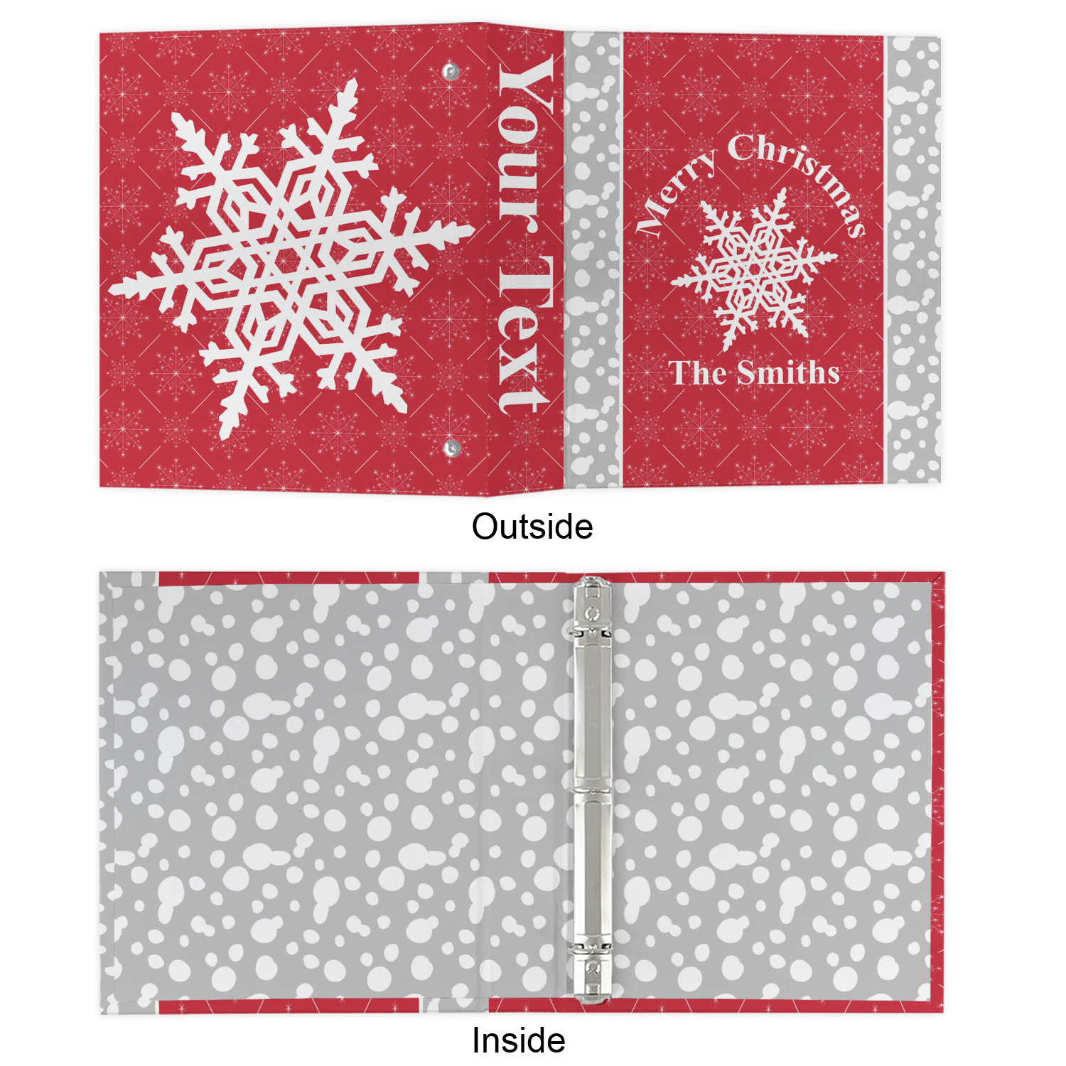 This design idea shows a calm grey and white snowflake filled background on either side of a red and white snowflake pattern in the middle. A big white snowflake have your greeting and personalization above and below it. This is a wonderful design idea to get your Christmas decorations started!