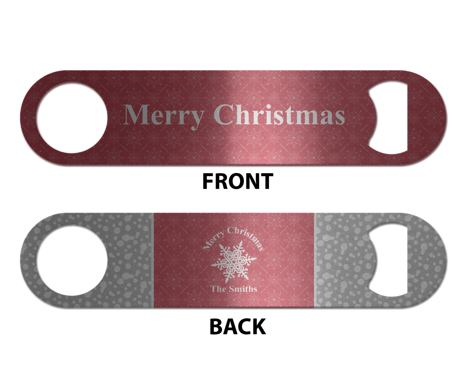 Stop struggling with the caps or your bottled beverages by purchasing one of our personalized bottle openers! These wrench-like custom bar blades are built to last. Customize one for your home's bar, or as a practical gift for a loved one!