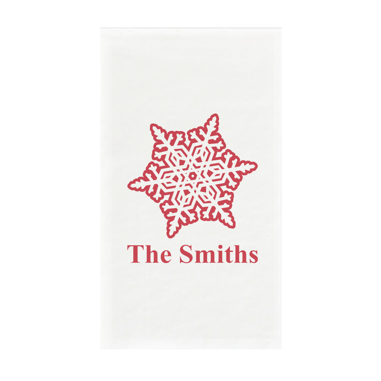 This design idea shows a calm grey and white snowflake filled background on either side of a red and white snowflake pattern in the middle. A big white snowflake have your greeting and personalization above and below it. This is a wonderful design idea to get your Christmas decorations started!