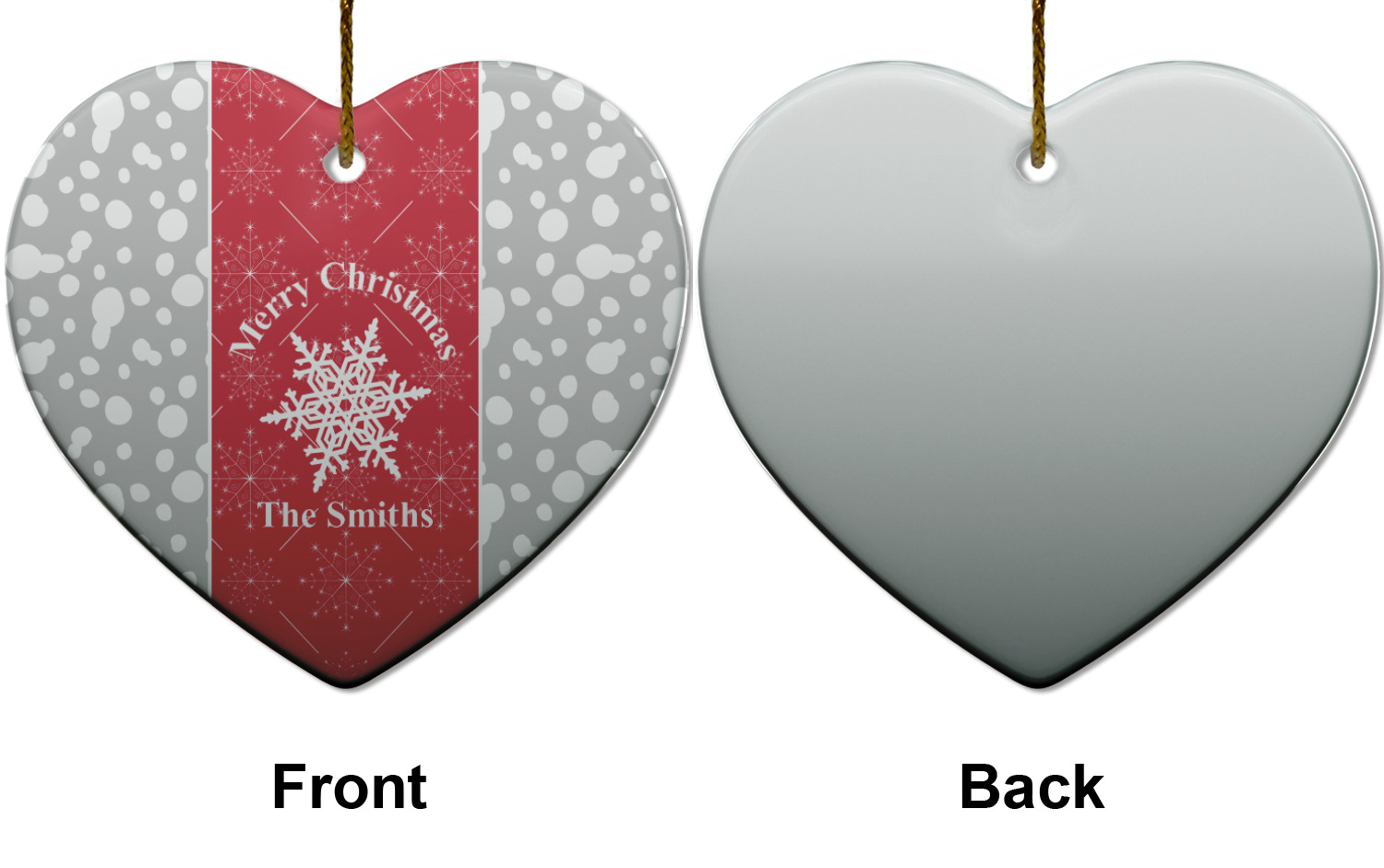 Have a happy holiday and share the joy of Christmas with your loved ones by hanging up personalized ceramic ornaments! Ornaments add a touch of who you are and the things you love onto the Christmas tree! Create custom ornaments for the kids and have them hang up their own star with their name, or pay remembrance this holiday to missed loved ones with our ceramic heart ornament. Browse many of our unique designs and customize them the way you'd like! From monograms, logos, and patterns, we have it all! You can even upload a photo of your family for us to print onto the ornament! The possibilities are endless!