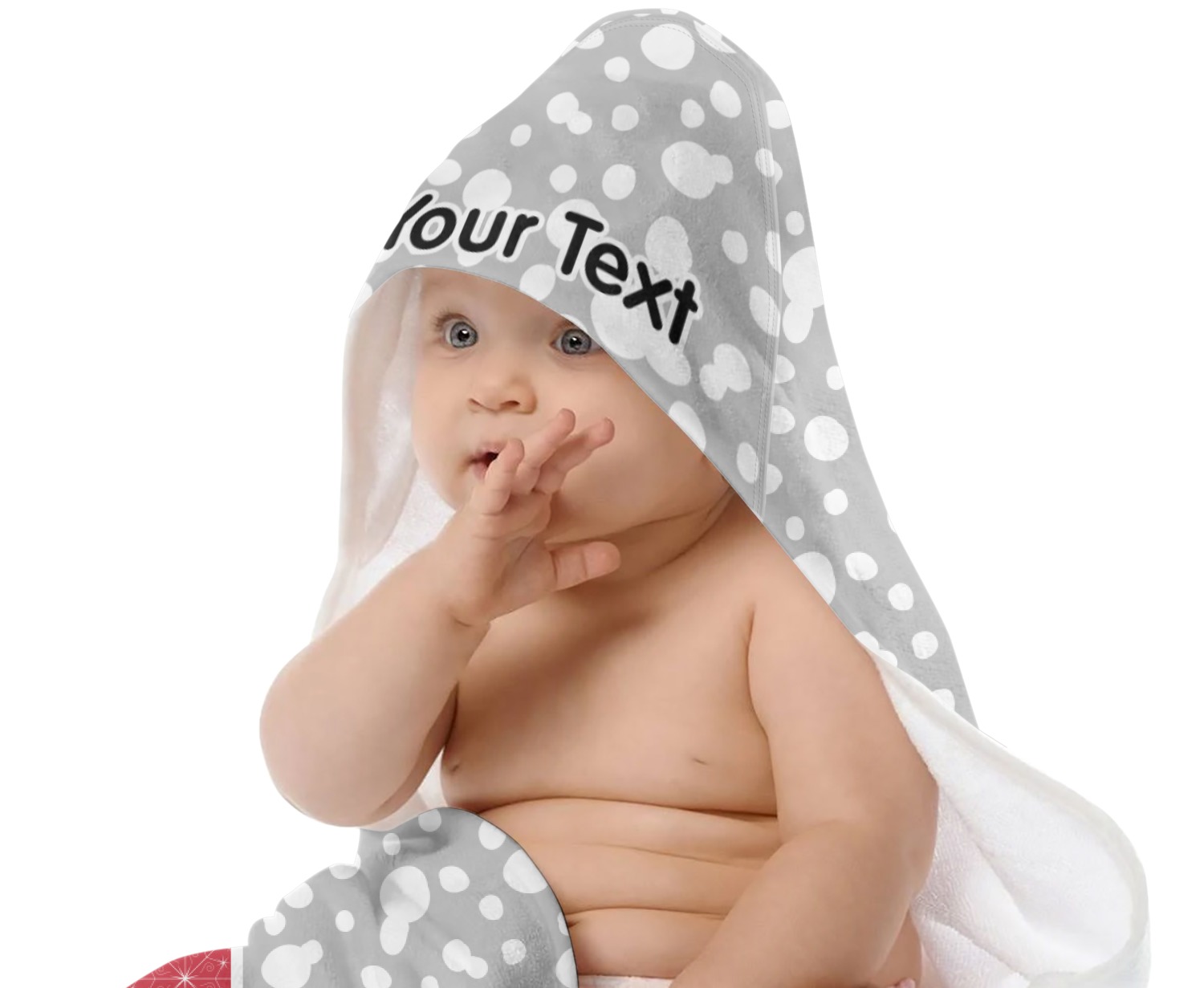 This baby towel is made with a plush microfiber velour and cotton terry. and thus will be soft and gentle against your newborn's skin, but also, very absorbent. Your customization is printed across the front & the hood, while the inside is a classy white.