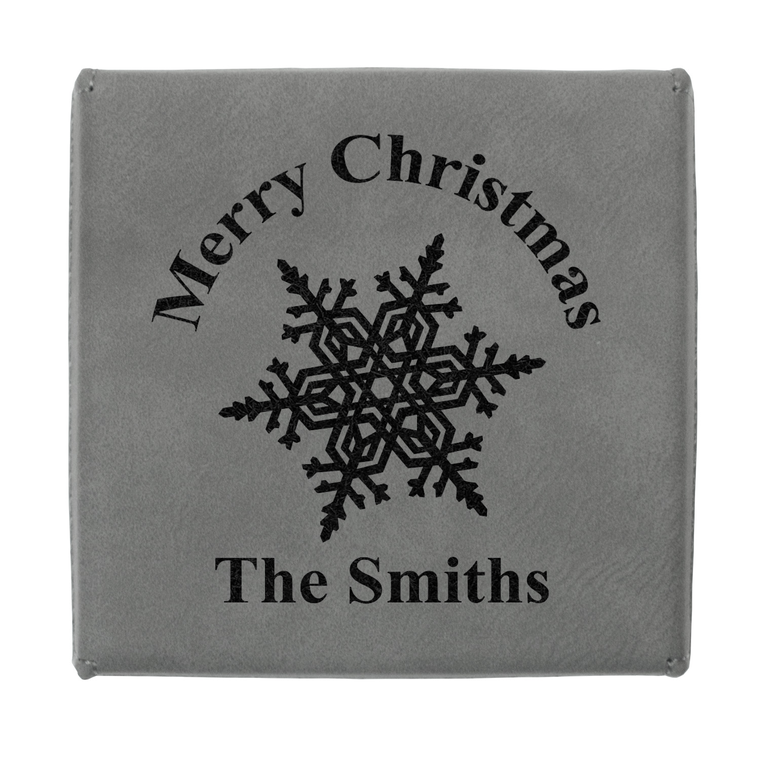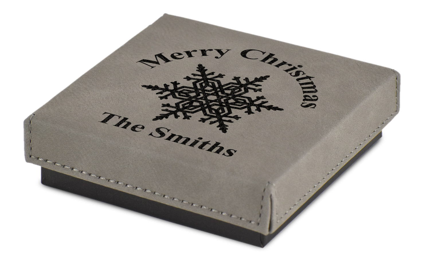 This jewelry gift box measures 3.5 inches long by 3.5 inches wide, and 1 inch deep. The box fits different sized jewelry items such as bracelets, necklaces, watches, earrings, rings and more. Engraved with a laser this high quality paper board and faux leather jewelry gift box is unique and makes any gift stand out.