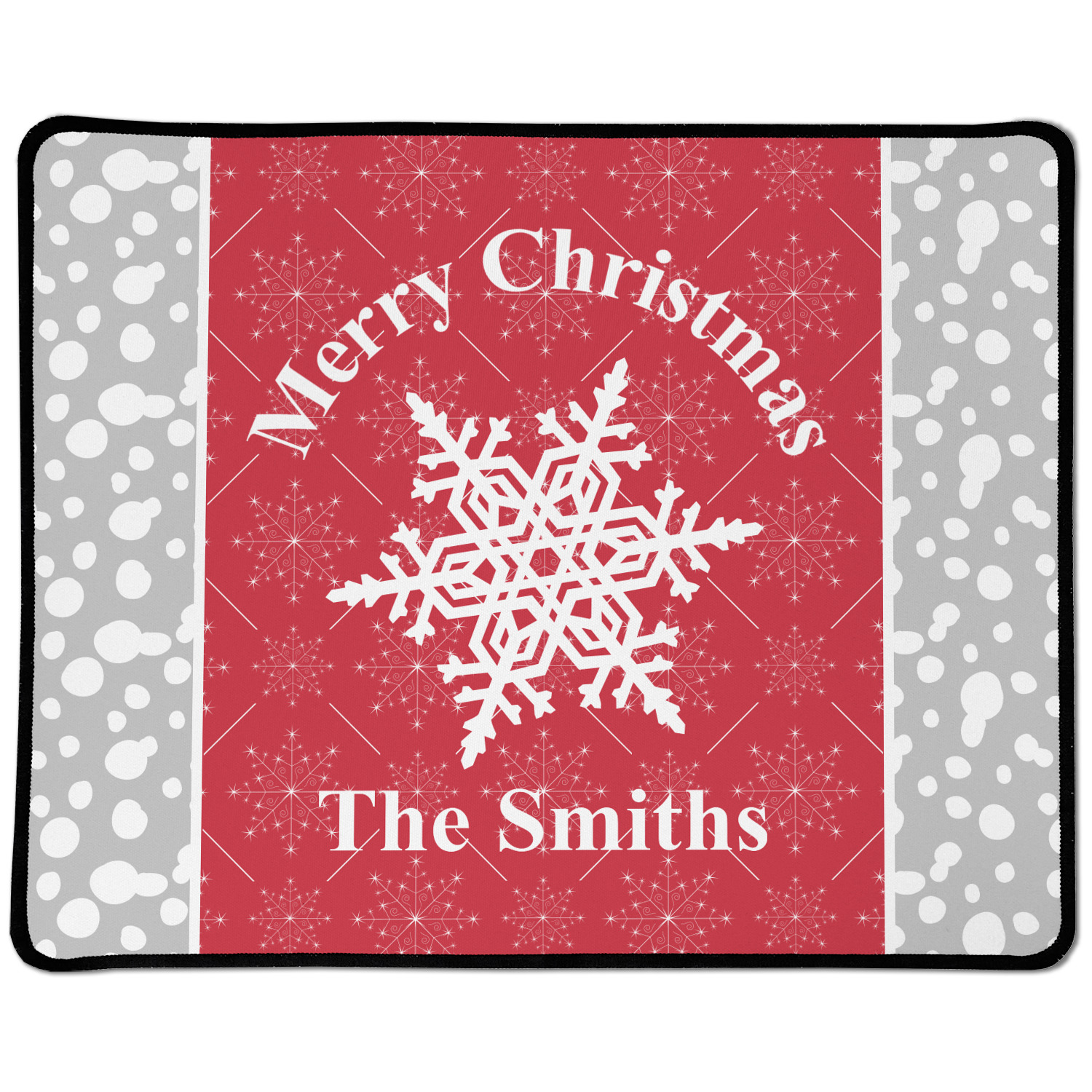This design idea shows a calm grey and white snowflake filled background on either side of a red and white snowflake pattern in the middle. A big white snowflake have your greeting and personalization above and below it. This is a wonderful design idea to get your Christmas decorations started!
