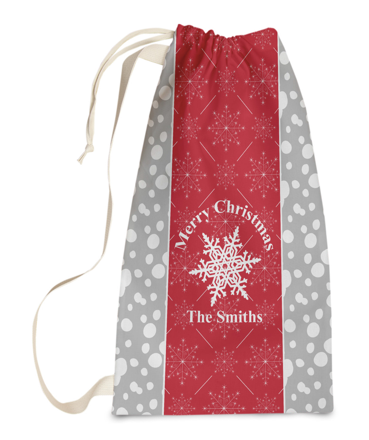 Carry your laundry in style with these customized laundry bags. Available in two sizes, featuring a natural colored woven strap and a cinch cord, these bags hold a lot of clothes or anything else you want to fit in them.