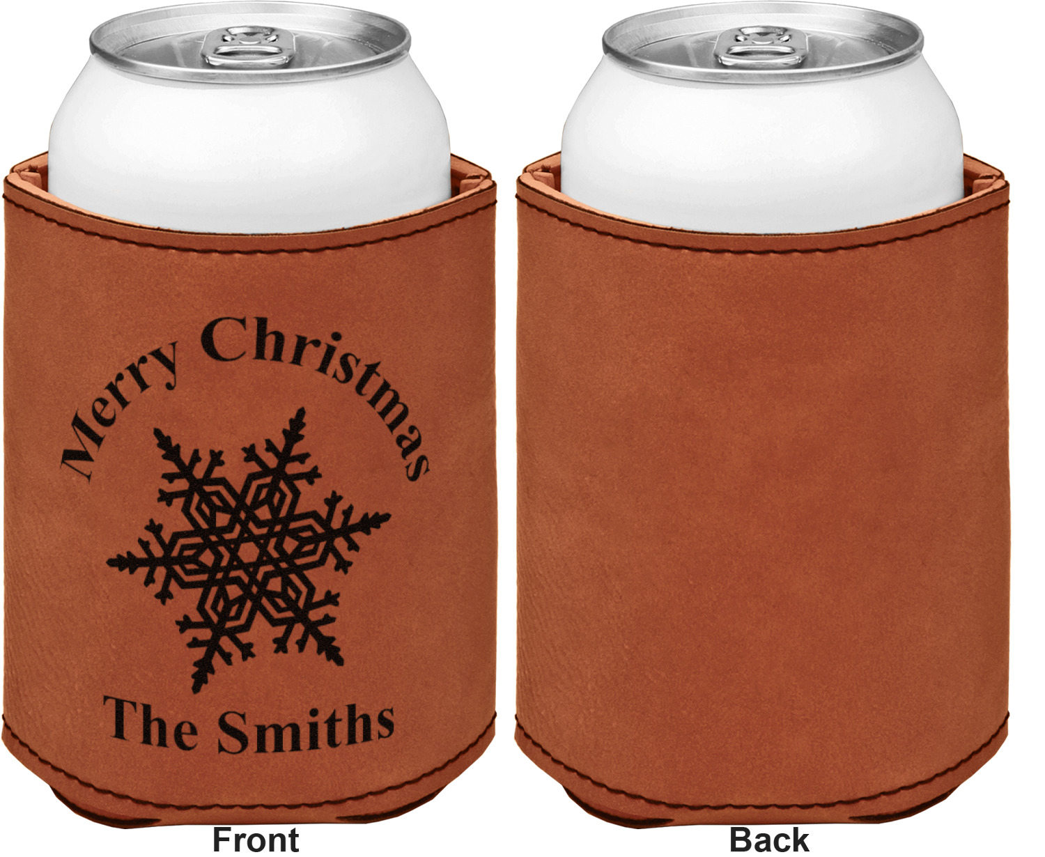 This can sleeve is made from a cognac-brown leatherette and stitched with a sturdy, black thread. A slim padding lines the inside of your can sleeve to allow for a better fit once your drink is inserted. The sleeve itself measures at 4 by 4.5 inches, allowing this custom can sleeve to accommodate most canned drinks. Your personalized design can be engraved on the front and back, or solely the front. When laser-engraved, your design appears as a black coloration which contrasts the leatherette nicely.