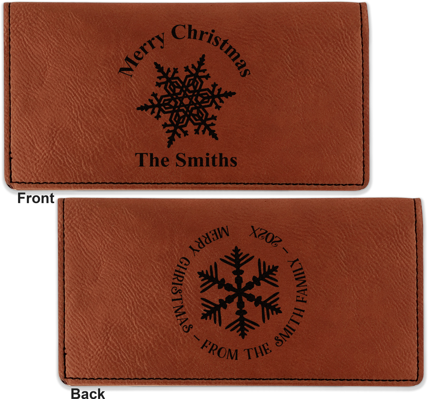 Go into our design center to start personalizing. Your checkbook cover will be laser engraved, making the graphic or text a black color. Choose a fun saying, monogram, or font to go on your checkbook cover. You have the opportunity to do it double or single sided.