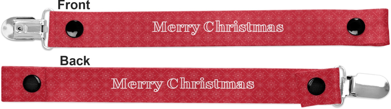 This personalized pacifier clip is the ideal size and measures at approximately 7.5 inches in length, when either end is snapped closed. On one end, you'll find a snap button. This button of your baby's pacifier holder is what can be attached to their pacifier to hold is securely in place. Simply open the snap, slip it through the pacifier opening, and snap it back into place. On the opposite end of this baby pacifier holder, you'll find a metal clip that can secure to a baby's collar or sleeve. This clip ensures that the strap stays in place, and that your baby's pacifier is always on hand.