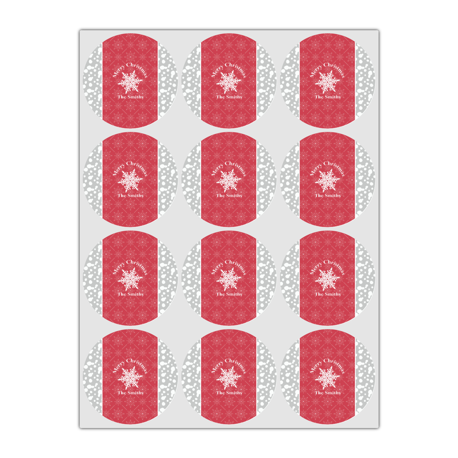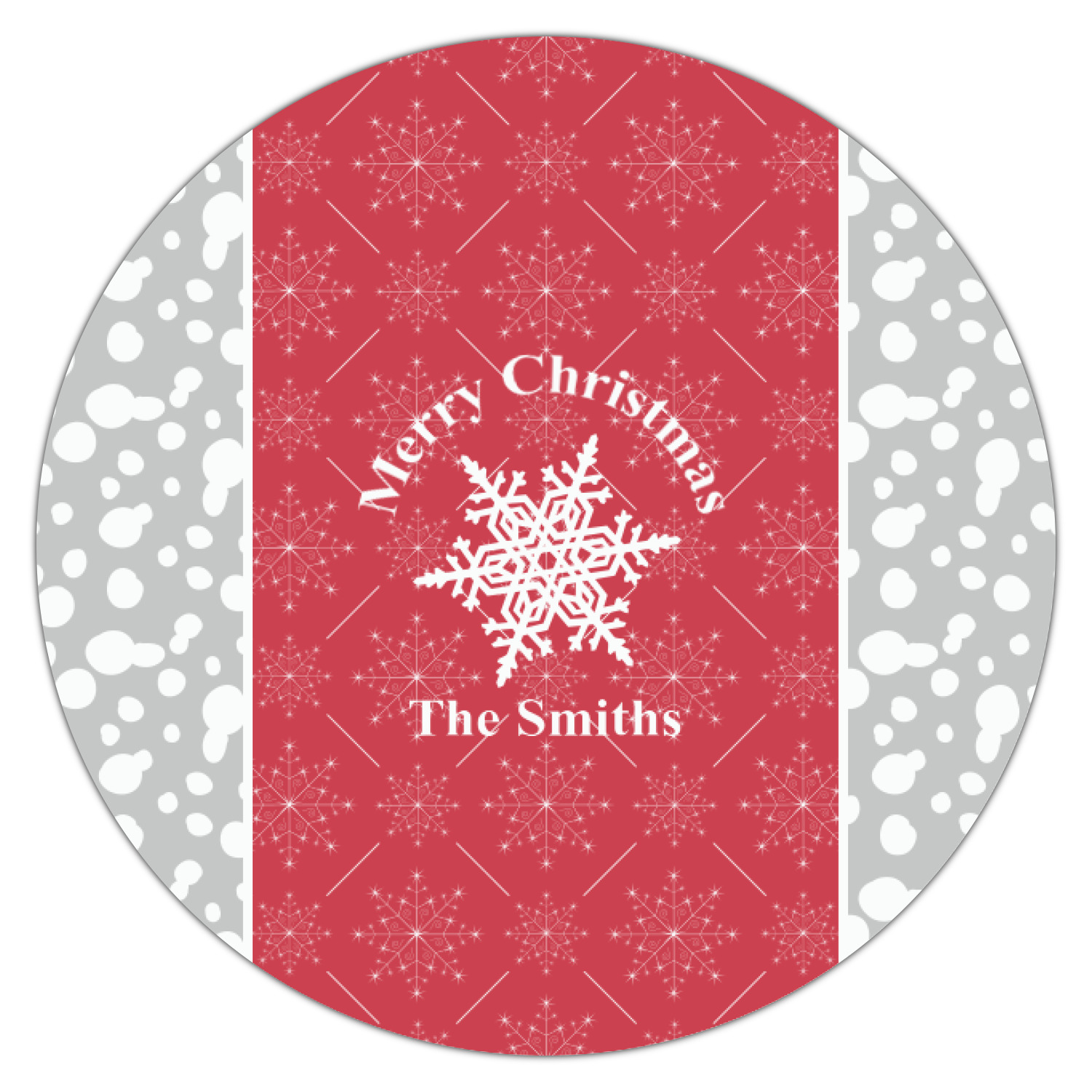 This design idea shows a calm grey and white snowflake filled background on either side of a red and white snowflake pattern in the middle. A big white snowflake have your greeting and personalization above and below it. This is a wonderful design idea to get your Christmas decorations started!