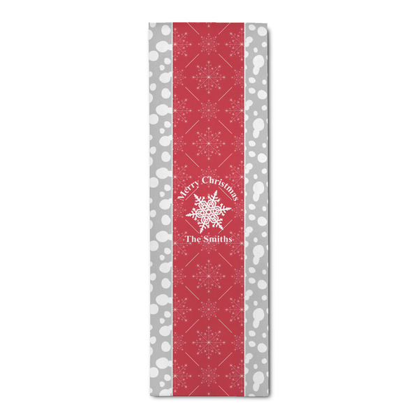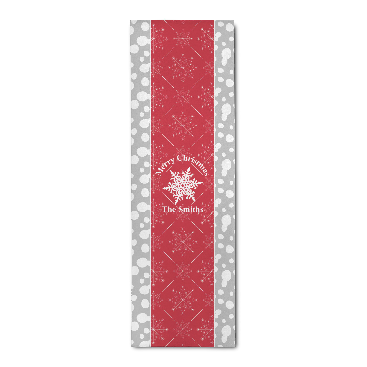 This design idea shows a calm grey and white snowflake filled background on either side of a red and white snowflake pattern in the middle. A big white snowflake have your greeting and personalization above and below it. This is a wonderful design idea to get your Christmas decorations started!