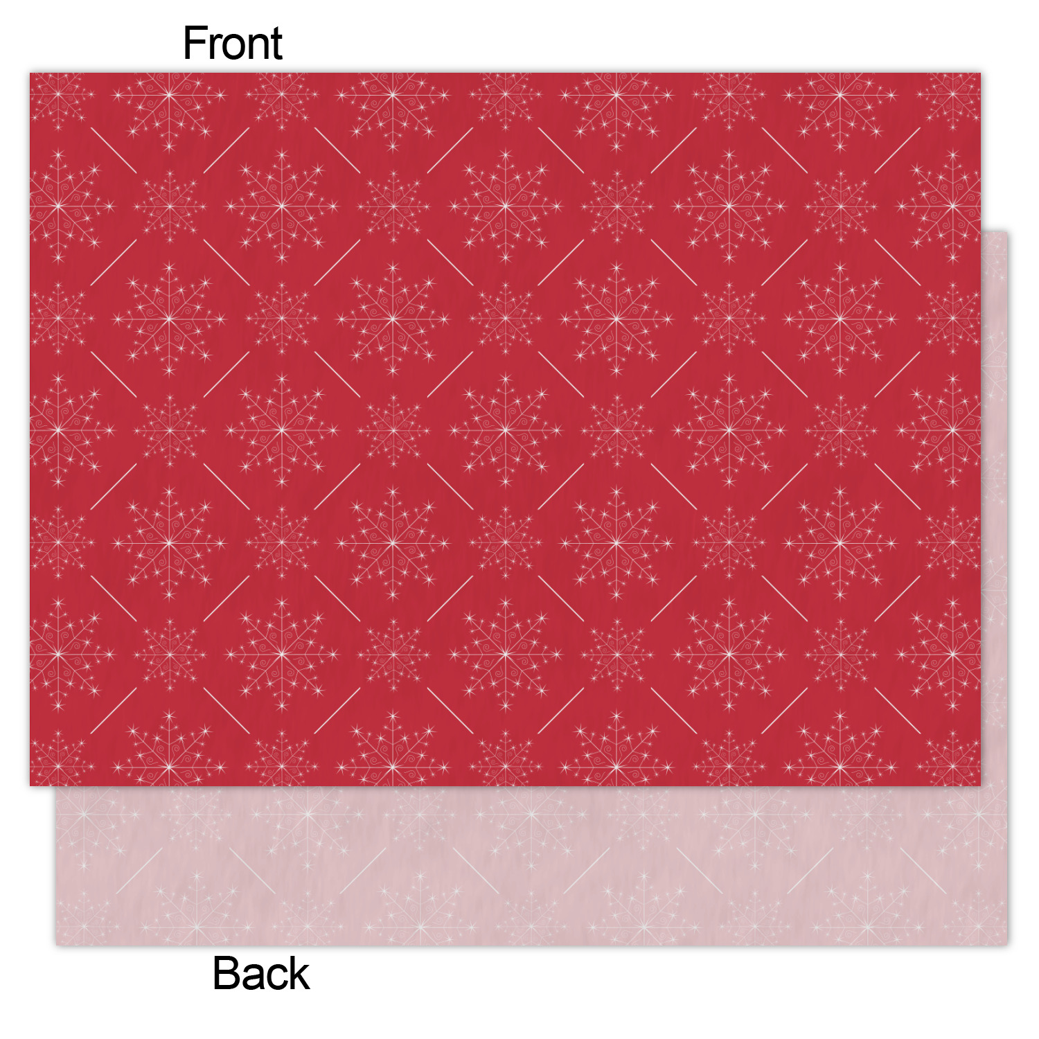 This design idea shows a calm grey and white snowflake filled background on either side of a red and white snowflake pattern in the middle. A big white snowflake have your greeting and personalization above and below it. This is a wonderful design idea to get your Christmas decorations started!