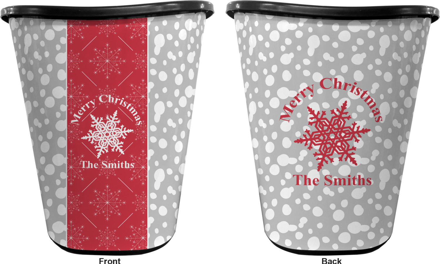 You can choose to purchase these decorative wastebaskets in either a white or a black color that will show on the base and the upper rim. Your customization is printed on a high-gloss, fine-quality vinyl adhesive, and you can choose to either have this adhesive applied to one side only or to both sides. As such, this plastic wastebasket can be single-sided or double-sided, depending on your creative vision. Your customization is printed using durable inks, making the design waterproof and resistant to fading over time.