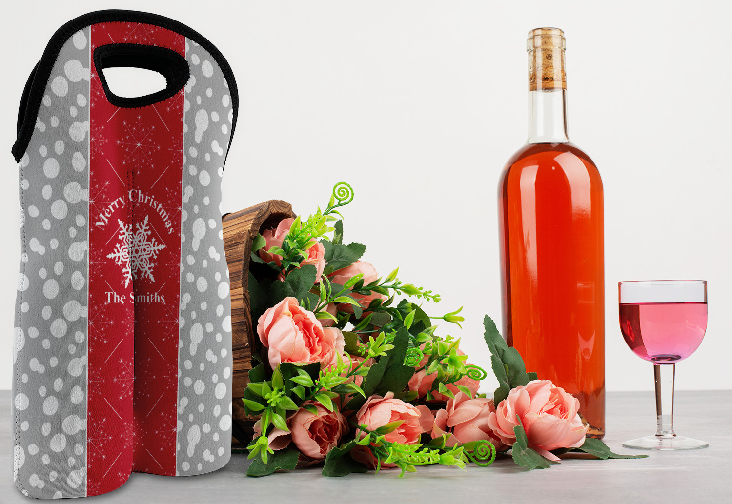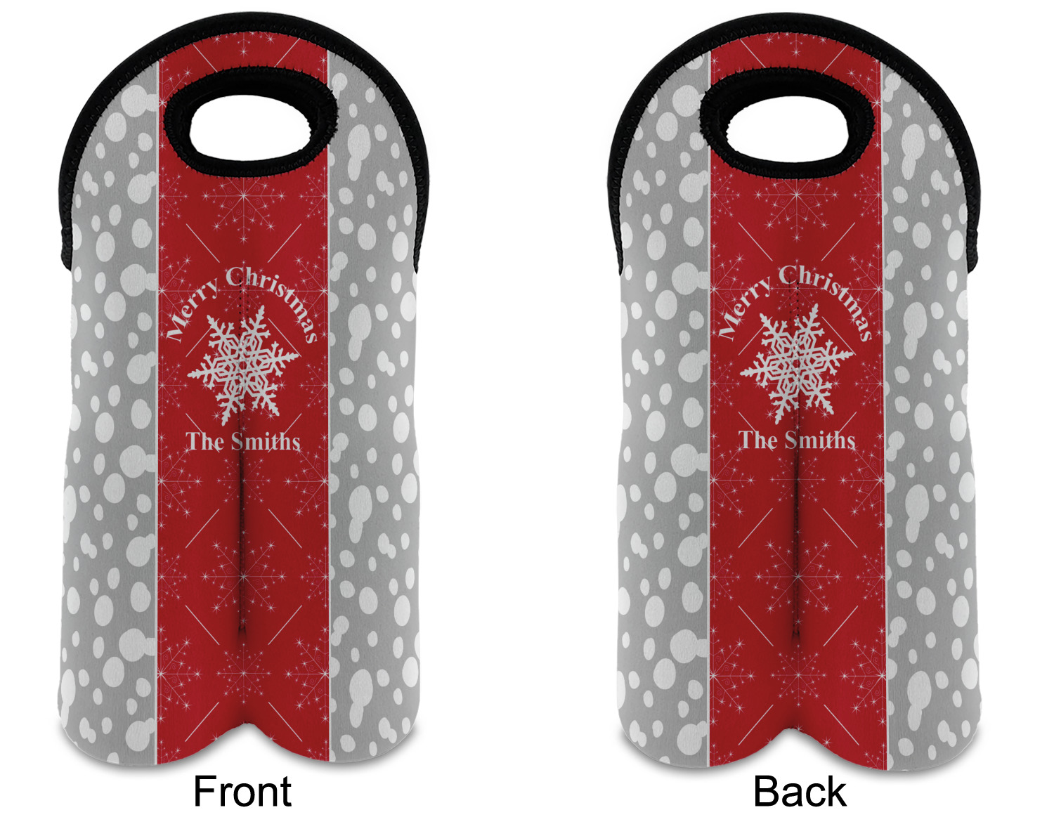 These tote bags are insulated to keep the bottles cold and have a stitched separation down the middle and double handles to keep the two bottles safe and secure during travels.