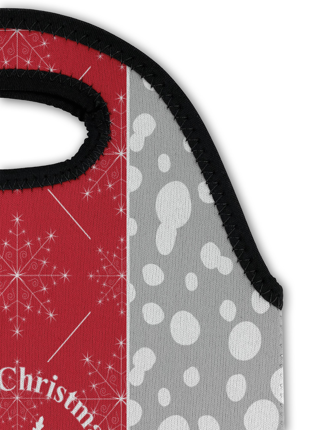 This design idea shows a calm grey and white snowflake filled background on either side of a red and white snowflake pattern in the middle. A big white snowflake have your greeting and personalization above and below it. This is a wonderful design idea to get your Christmas decorations started!
