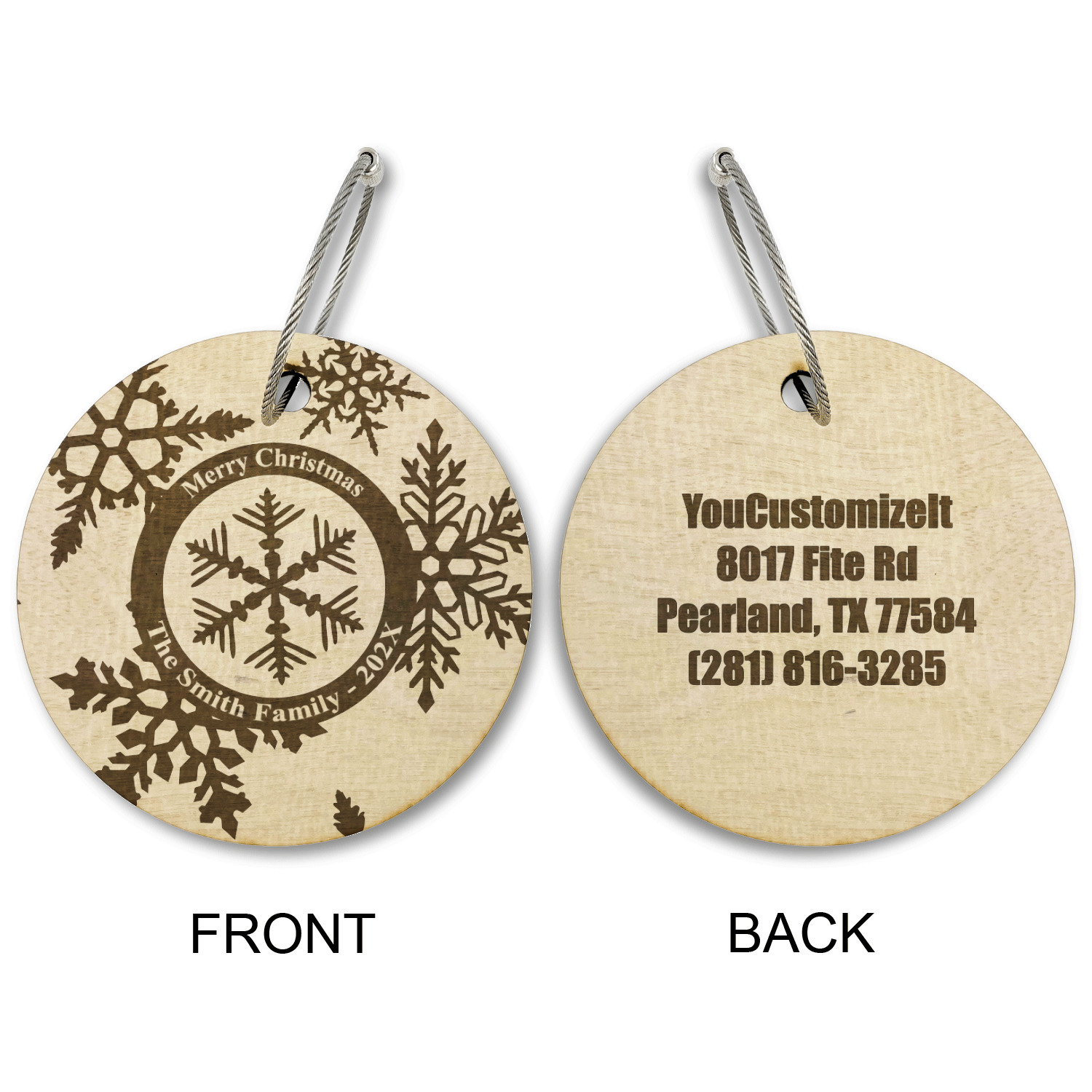 Made from a premium hardwood, these luggage tags are laser engraved and cut just for you. The front contains your design of choice and the back has your contact information to ensure your luggage gets back to you if ever lost.