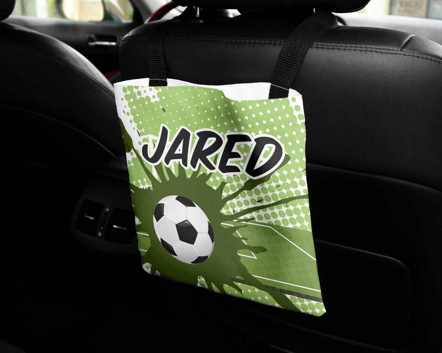 These car back seat organizers are sturdy tote-like bags, fabricated from a robust polyester, and features a single handle on the back side. The strap features an attachable velcro for easy attachment to headrests, grocery carts, car seats, and more. Simply undo the velcro, loop the strap around the headrest, reattach the velcro, and let the organizer hang from the front seat. These car organizers are the perfect means of increasing your backseat's legroom, while storing multiple items in one place for better accessibility. Each car back seat organizer measures at 10 by 10 inches, and features your personalized design printed across its front and back.