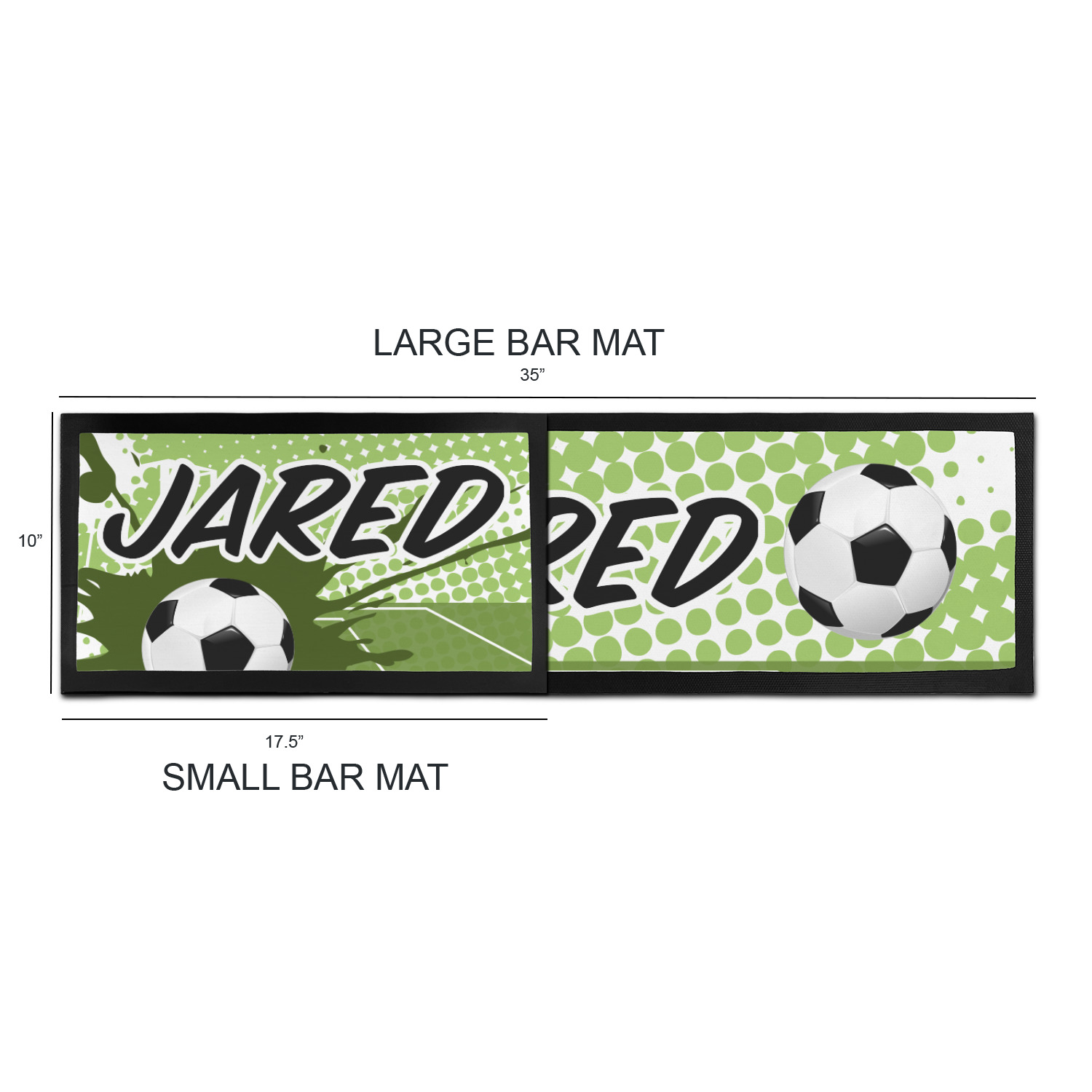 This fun design has a cool abstract background with a soccer field and splatters of different shades of green. There is a soccer ball in the left corner of the design while your personalization goes towards the top. This is a great design for any teen or kid who loves soccer. Easily change the neutral colors to something more masculine or feminine.