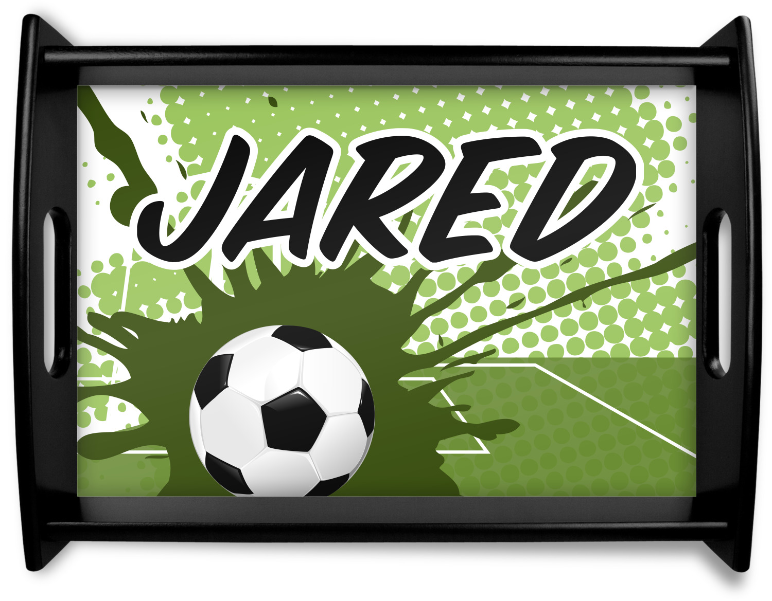 This fun design has a cool abstract background with a soccer field and splatters of different shades of green. There is a soccer ball in the left corner of the design while your personalization goes towards the top. This is a great design for any teen or kid who loves soccer. Easily change the neutral colors to something more masculine or feminine.