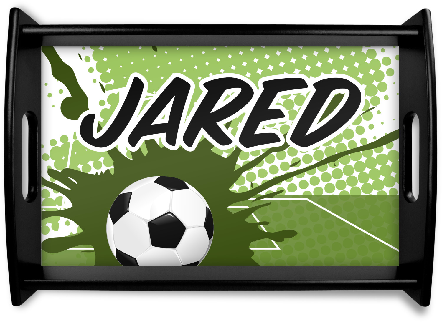 This fun design has a cool abstract background with a soccer field and splatters of different shades of green. There is a soccer ball in the left corner of the design while your personalization goes towards the top. This is a great design for any teen or kid who loves soccer. Easily change the neutral colors to something more masculine or feminine.