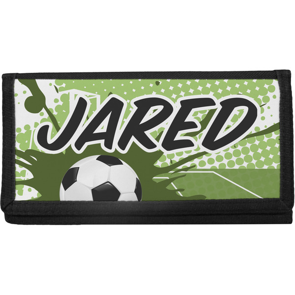 This fun design has a cool abstract background with a soccer field and splatters of different shades of green. There is a soccer ball in the left corner of the design while your personalization goes towards the top. This is a great design for any teen or kid who loves soccer. Easily change the neutral colors to something more masculine or feminine.