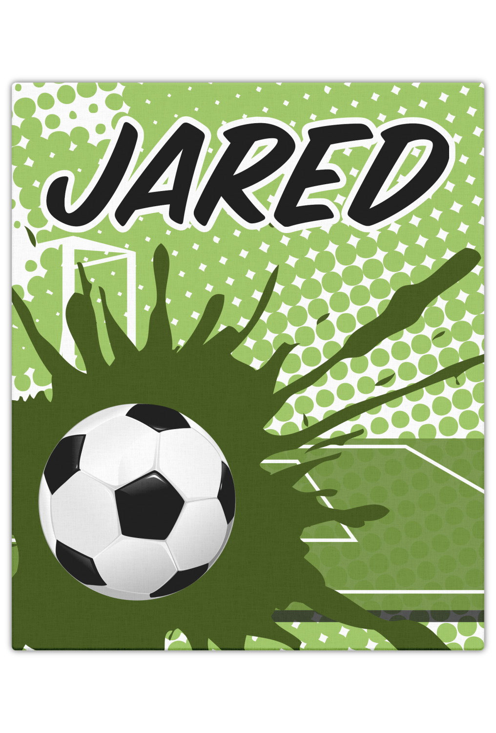 This fun design has a cool abstract background with a soccer field and splatters of different shades of green. There is a soccer ball in the left corner of the design while your personalization goes towards the top. This is a great design for any teen or kid who loves soccer. Easily change the neutral colors to something more masculine or feminine.