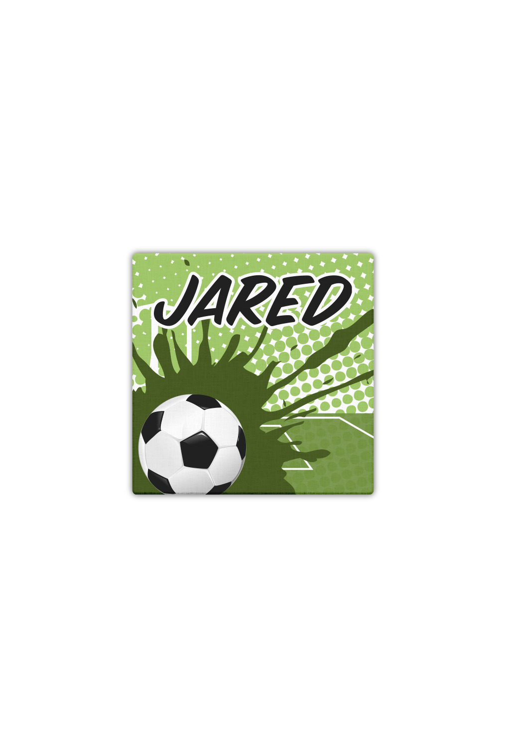 This fun design has a cool abstract background with a soccer field and splatters of different shades of green. There is a soccer ball in the left corner of the design while your personalization goes towards the top. This is a great design for any teen or kid who loves soccer. Easily change the neutral colors to something more masculine or feminine.