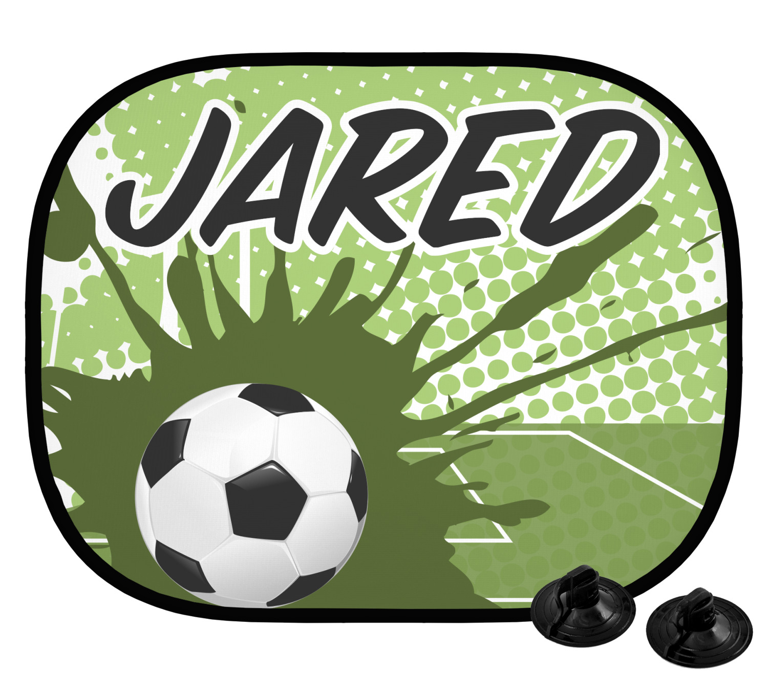 Our custom car sun shade is fabricated from a polyester netting that manages to block out most harsh rays, while still allowing some light to come through. A metal ring encircles the polyester netting, which grants durability and stiffness to the shade. We print your personalized design on the entire surface of the product. Two black suction cups accompany this product; the pair clip onto either side of the shade and allows for easy attachment and removal. Each shade measures at 17.25" x 14.25". We suggest that you measure the side windows of your car to ensure that this car window shade is a proper fit.