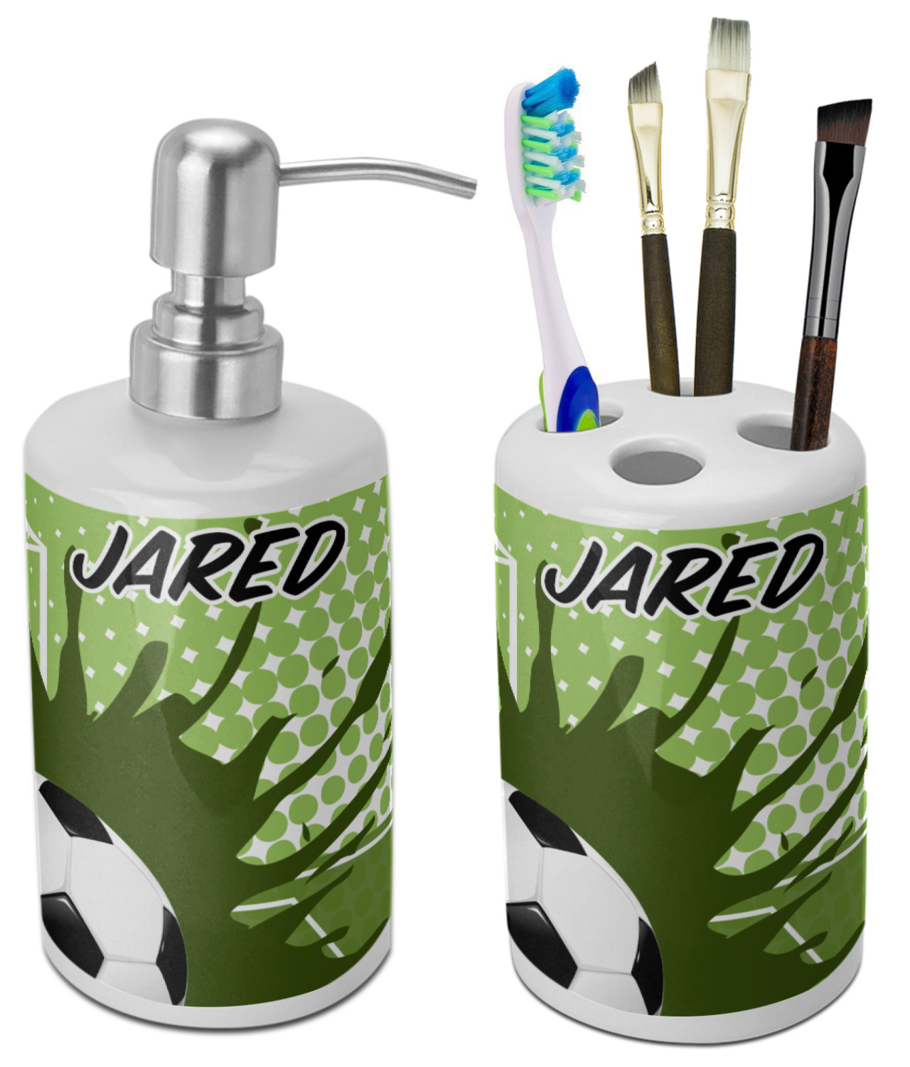 | Product Dimensions | Ceramic Soap / Lotion Dispenser (4" x 3" x 7") Ceramic Toothbrush Holder (3" x 3" x 4.5") |