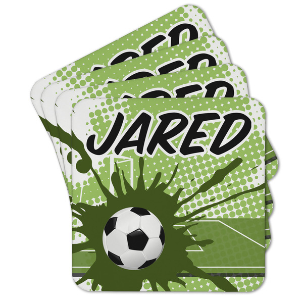 This fun design has a cool abstract background with a soccer field and splatters of different shades of green. There is a soccer ball in the left corner of the design while your personalization goes towards the top. This is a great design for any teen or kid who loves soccer. Easily change the neutral colors to something more masculine or feminine.
