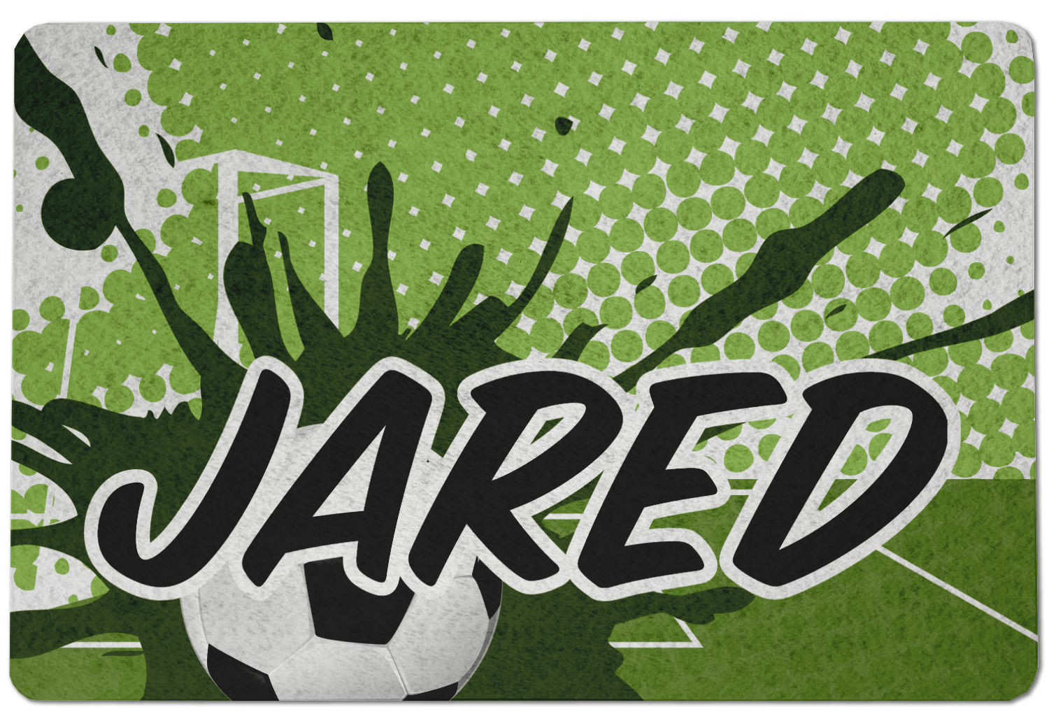 This fun design has a cool abstract background with a soccer field and splatters of different shades of green. There is a soccer ball in the left corner of the design while your personalization goes towards the top. This is a great design for any teen or kid who loves soccer. Easily change the neutral colors to something more masculine or feminine.