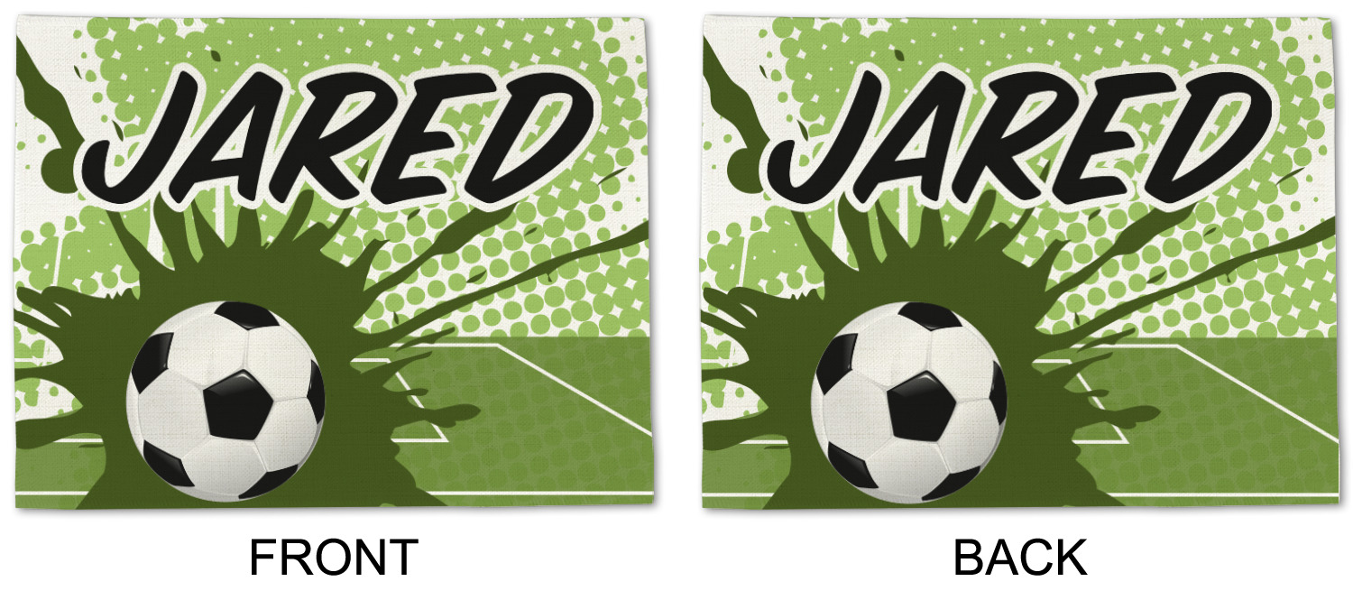 This fun design has a cool abstract background with a soccer field and splatters of different shades of green. There is a soccer ball in the left corner of the design while your personalization goes towards the top. This is a great design for any teen or kid who loves soccer. Easily change the neutral colors to something more masculine or feminine.