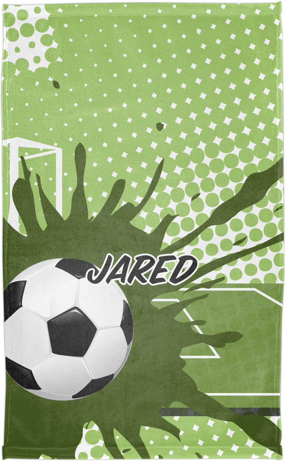 This fun design has a cool abstract background with a soccer field and splatters of different shades of green. There is a soccer ball in the left corner of the design while your personalization goes towards the top. This is a great design for any teen or kid who loves soccer. Easily change the neutral colors to something more masculine or feminine.