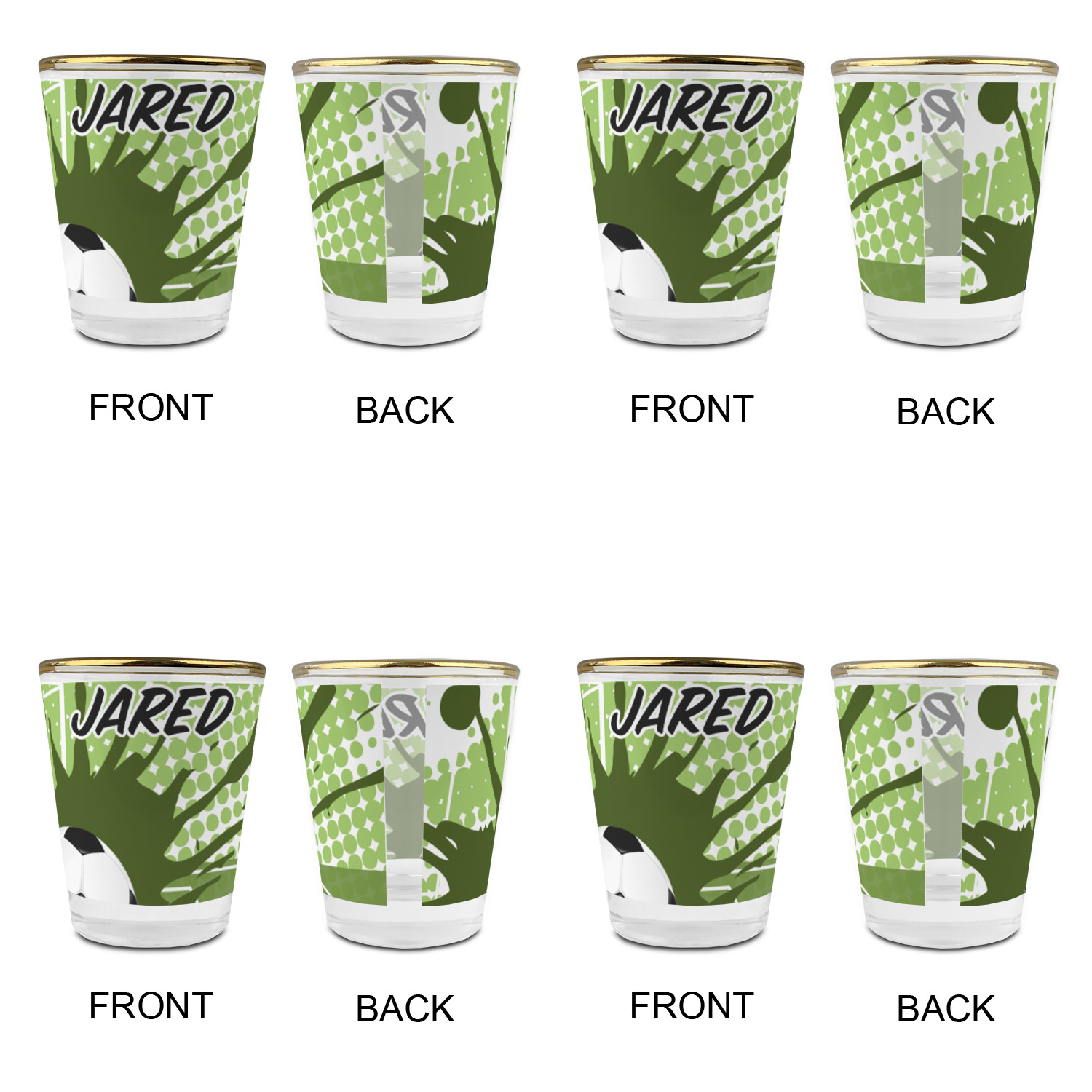 Made with frosted glass, these shot glasses are printed in full color with the design of your choice. They are a standard 1.5oz shot glass and are 2.4" tall. The print is wrapped around the shot glass in a full wrap and boldly displays your customization.