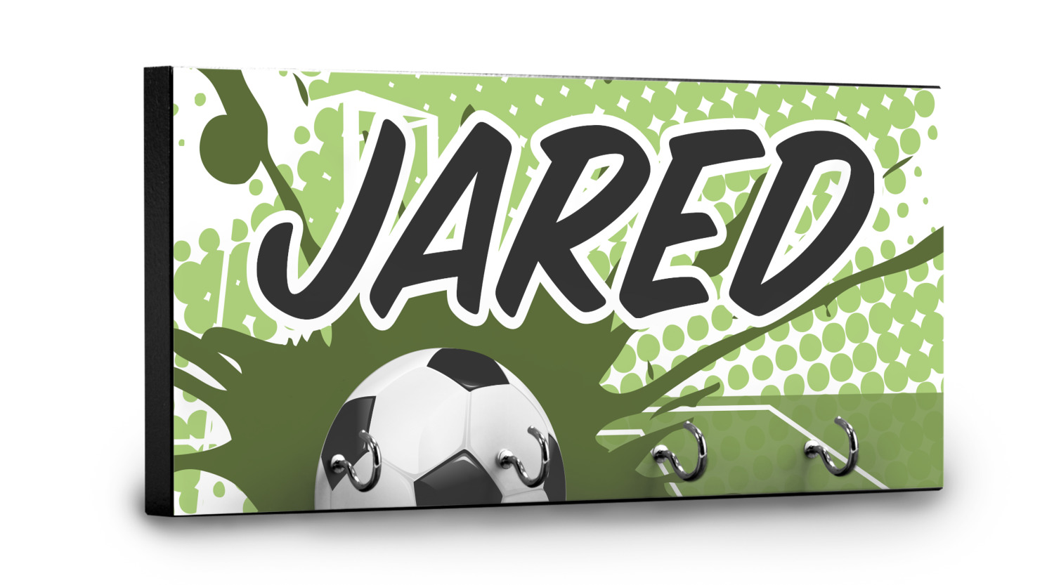 This fun design has a cool abstract background with a soccer field and splatters of different shades of green. There is a soccer ball in the left corner of the design while your personalization goes towards the top. This is a great design for any teen or kid who loves soccer. Easily change the neutral colors to something more masculine or feminine.