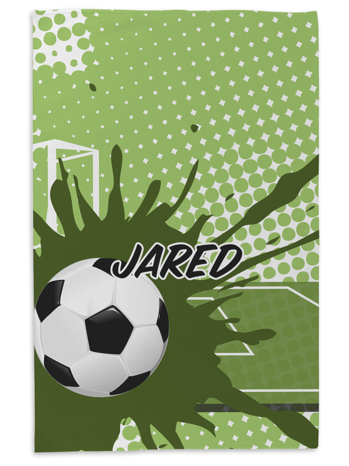 This fun design has a cool abstract background with a soccer field and splatters of different shades of green. There is a soccer ball in the left corner of the design while your personalization goes towards the top. This is a great design for any teen or kid who loves soccer. Easily change the neutral colors to something more masculine or feminine.
