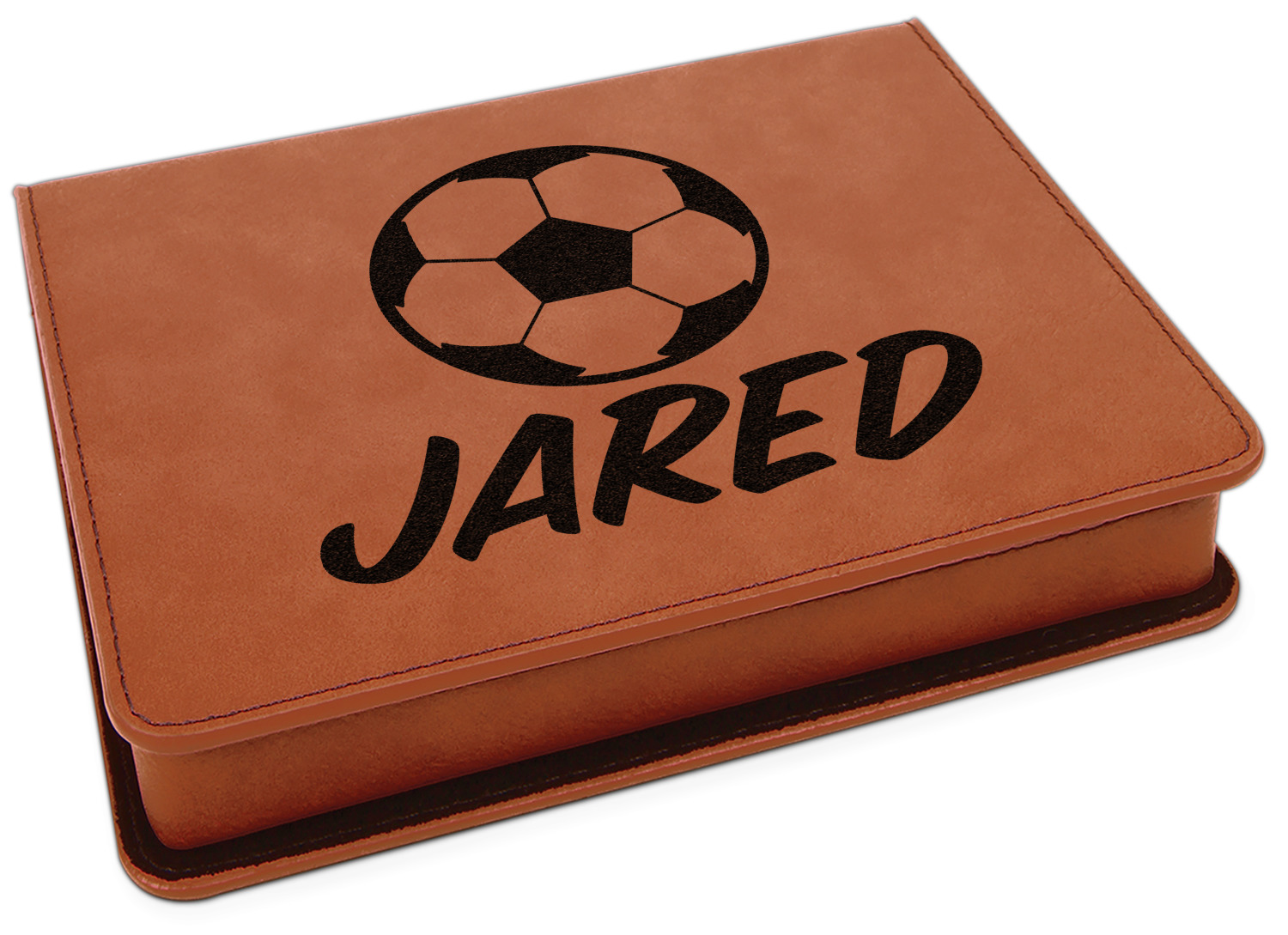 This set includes a wine stopper, pourer, drip ring, and a corkscrew! The exterior of the box is a gorgeous, cognac-brown leatherette, while the interior is covered in a black, velvety material. Four foam indentations, unique to the shape of the wine tool, are found at the bottom half of the box's interior. The tools fit snugly into each of their designated spots, and the foam material helps to protect the integrity of your tools. Each of the wine gadgets features a bamboo accent, with the location and style depending on the tool itself. We laser engrave your personalized design onto the lid of the box, which easily flips open and is secured closed by a small magnet. The wine accessories box measures at 7 by 5.5 inches in total.