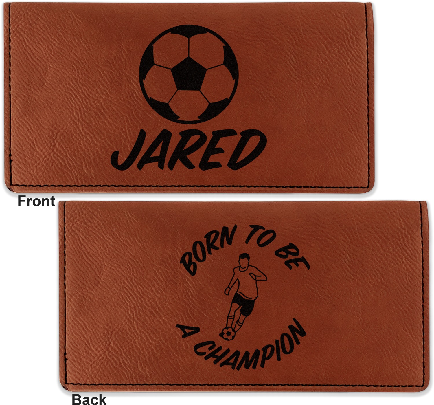 Go into our design center to start personalizing. Your checkbook cover will be laser engraved, making the graphic or text a black color. Choose a fun saying, monogram, or font to go on your checkbook cover. You have the opportunity to do it double or single sided.