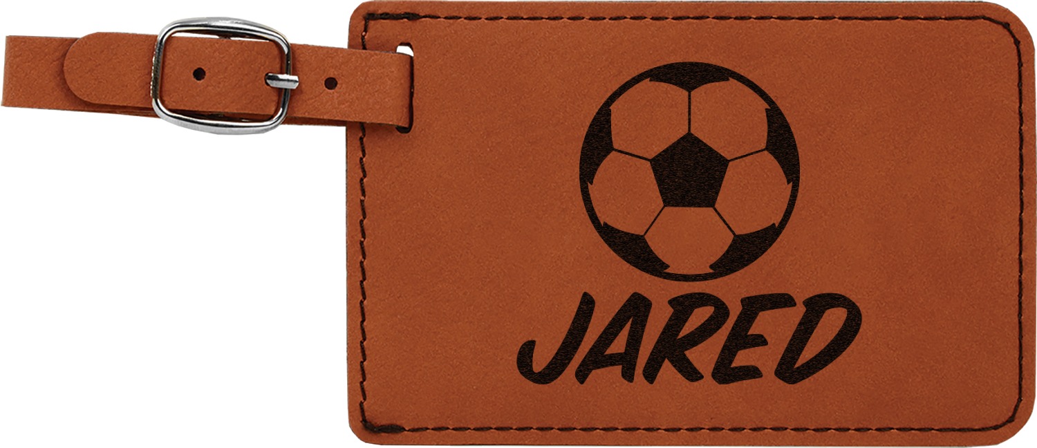 This luggage tag will surely be able to get you started in having all the right tools for traveling. It is made of a beautiful leatherette material that is a nice shade of cognac brown. The front of the tag is where your design goes. The sturdy black stitching gives your design an extra pop and gives the tag extra durability. The back of the tag has a clear vinyl window where you can slip in your address card. The tag comes with a great little buckle strap that you can easily use to clip to your suitcase. The tag itself measures at approximately 5.5"W x 4.25"H.